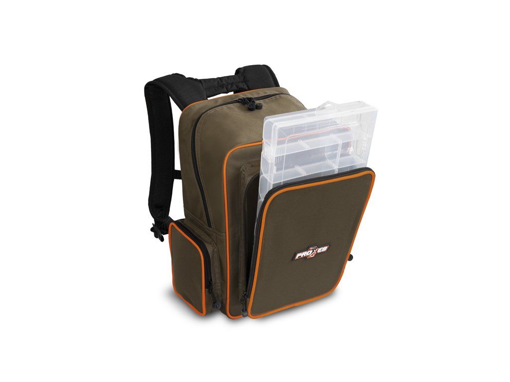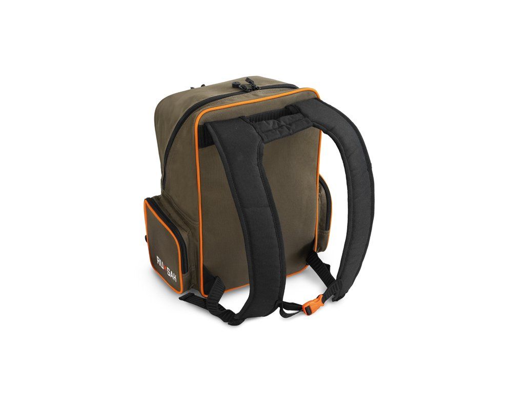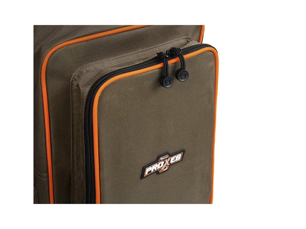 Delphin PROXES Ruxsak je univerzální model batohu, speciálně navržený zejména pro potřeby vláčkařů a feederistů. Své uplatnění si ovšem najde i napříč jinými rybolovnými technikami, ale nepochybně i při běžném nošení či turistice. Ruxsak, ale i jiné produkty ze série PROXES jsou specifické kvalitním provedením, vysokou praktičností, 100% funkčností a to vše za velmi příjemnou pořizovací cenu. Batoh je důmyslně zpracován tak, aby poskytoval dostatek úložného prostoru pro boxy s přívlačovými nástrahami, bižuterii, feedrové příslušenství, či jakoukoli jinou výbavu potřebnou k úspěšnému lovu. Přístup do hlavního odkládacího prostoru umožňuje zip umístěný pod úhlem, pro zjednodušení vkládání či vykládání věcí. Batoh kromě hlavního ukládacího prostoru nabízí i dvě menší zipovatelné kapsy, nacházející se po bocích. Nespornou výhodou v porovnání s běžnými batohy v podobné cenové kategorii je zipovatelná kapsa v přední části, obsahující již v základu plastový box, využitelný například na nástrahy či feederová krmítka. Díky transparentnímu provedení boxu budete mít vždy dokonalý přehled o tom, co se uvnitř nachází. Samozřejmostí jsou polstrované, délkově nastavitelné ramenní popruhy, umožňující pohodlné nošení i během dlouhých vycházek. Popruhy lze navíc sepnout k sobě pomocí integrovaného popruhu s plastovým klipem. Ruxsak je vybaven kvalitními zipy, které jsou opatřeny plastovými tahačky s logem značky Delphin. Technické parametry: Vnější rozměry: 41x34x24cm Rozměr hlavní části: 41x26x19cm Přední kapsa: 30x20x4cm Boční kapsy: 15,5x15,5x4cm Rozměr krabice: 27x18x4cmDoplňkové parametry