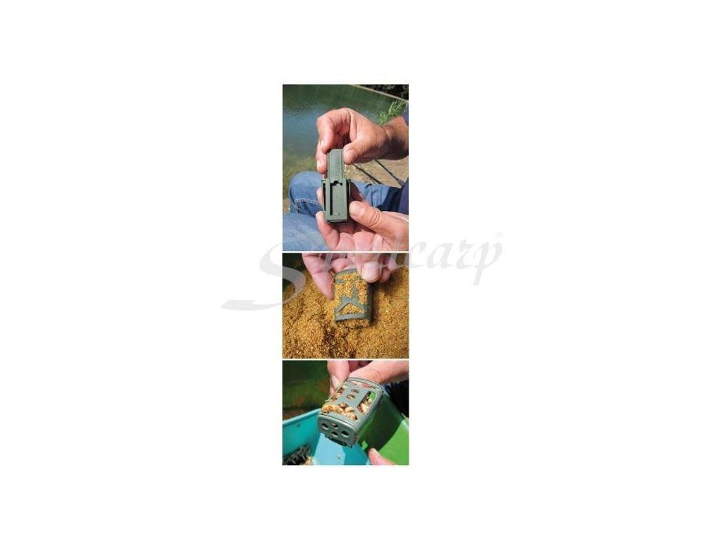 Použijte krmítko otevřené pro klasické krmení vnadící směsí. Pokud chcete krmit červy, jednoduše připevněte krytku a naplňte krmítko živými nástrahami.