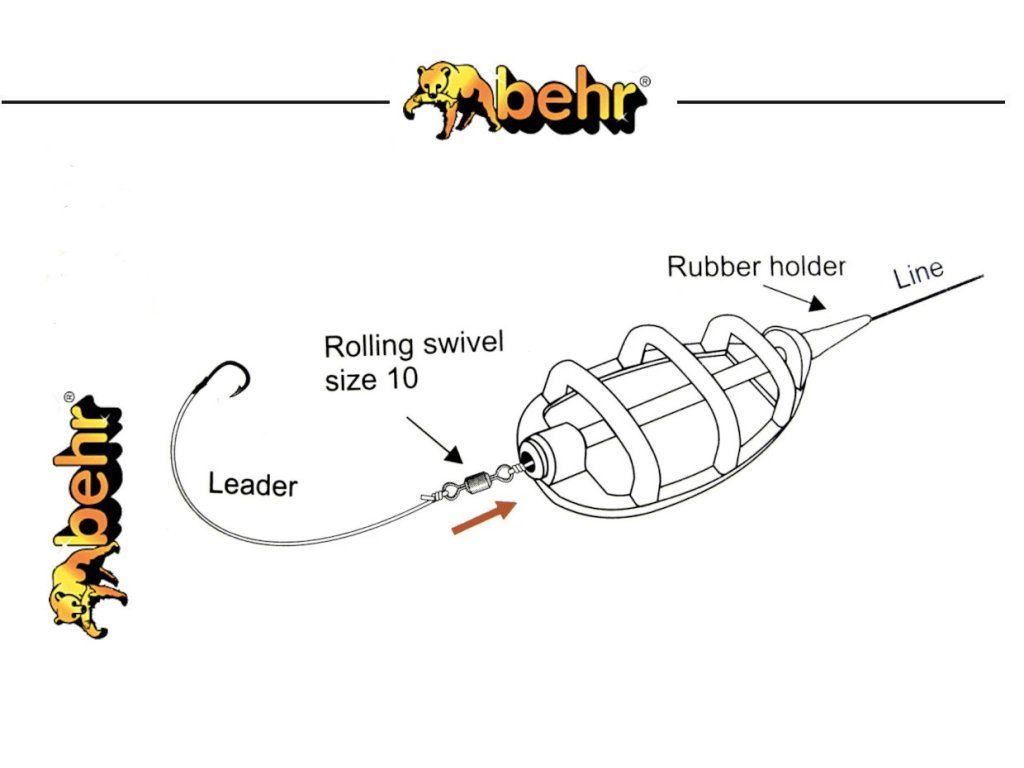 Behr feederové krmítko Method Feeder se používá pro method feeder lov. Vložte krmivo do krmítka a umístěte háček s nástrahou do vybrání, kde bude držet na správném místě. Poté proveďte nához a čekejte na záběr.