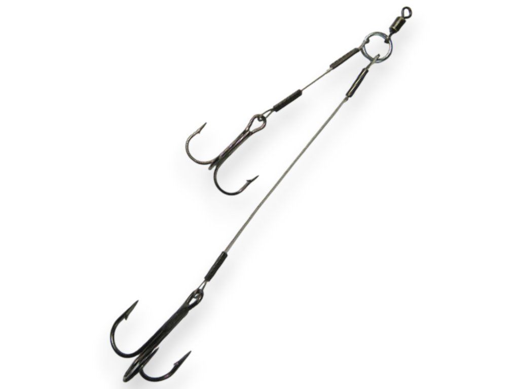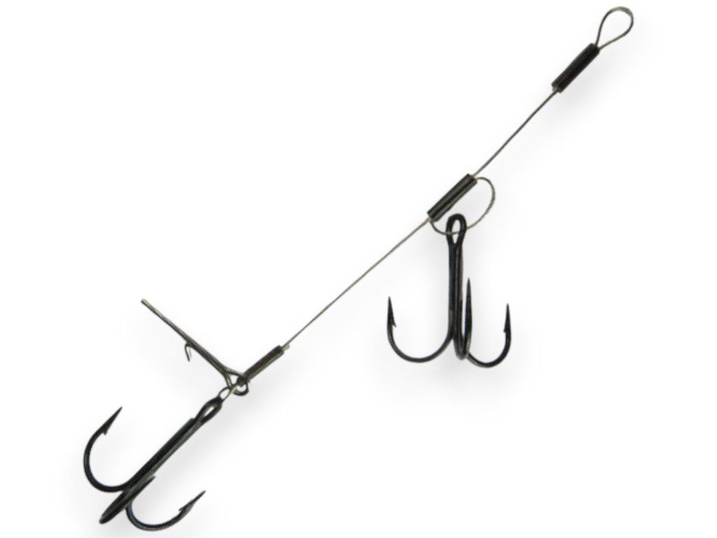 Behr háčkový systém Raubfisch je ideální volbou pro lov dravých ryb, ať už používáte umělé nástrahy nebo mrtvé rybičky. Tento systém s dvěma trojháčky je navržen tak, aby zajistil spolehlivý záběr a odolnost vůči silným zubům ryb. Kvalitní trojháčky NLC a robustní lanko jsou zárukou, že váš úlovek nebude mít šanci se uvolnit.