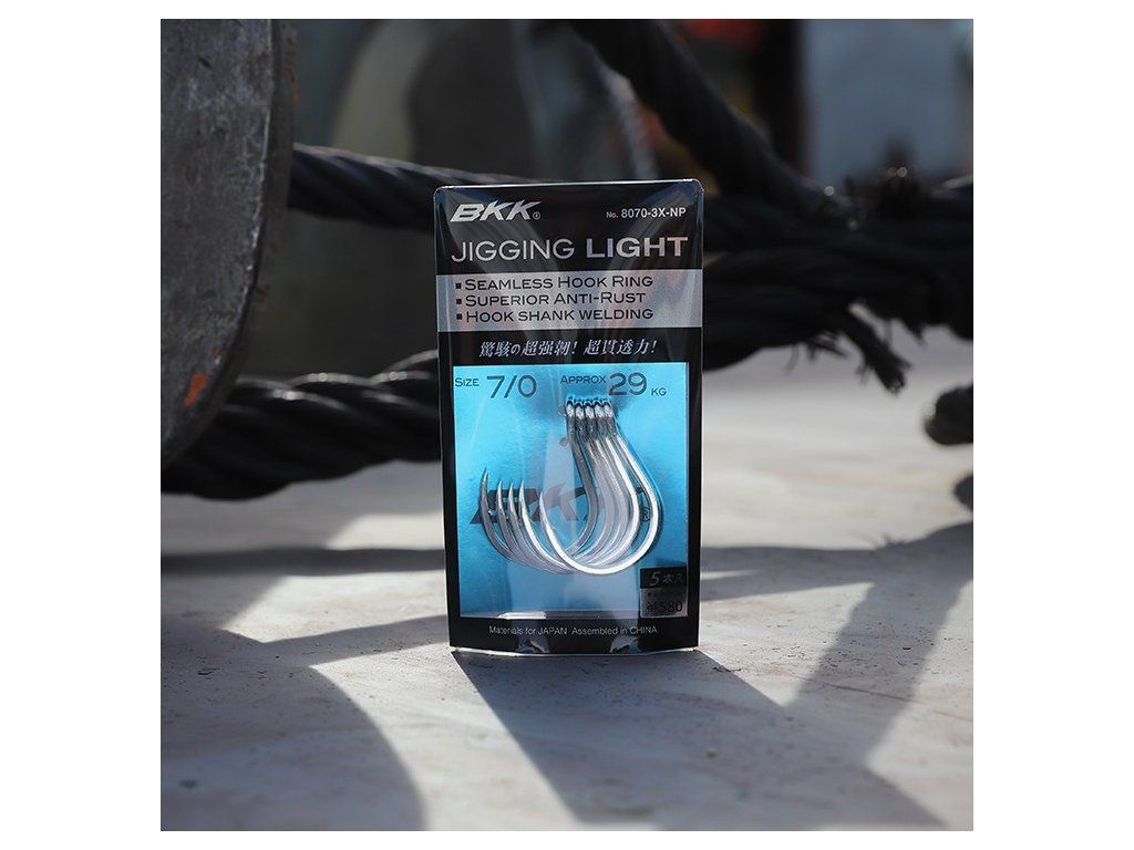BKK Reef Master NP je skvělým jiggingovým háčkem s výborným poměrem cena/výkon. Má perfektně svařené očko a je vyroben přesným procesem BKK kování, což zvyšuje celkovou sílu a odolnost háčku. Je také posílen cínovým potahem, díky čemuž nerezne ani ve slané vodě. Pro snadný zásek za každých podmínek má háček BKK hrot ostrý jako jehla. Háček je rovněž vyroben pomocí BKK’s Micro Ring technologie, která zajišťuje správný průměr očka háčku a usnadňuje jeho navléknutí na kroužek bez snížení celkové síly a odolnosti háčku.Doplňkové parametry