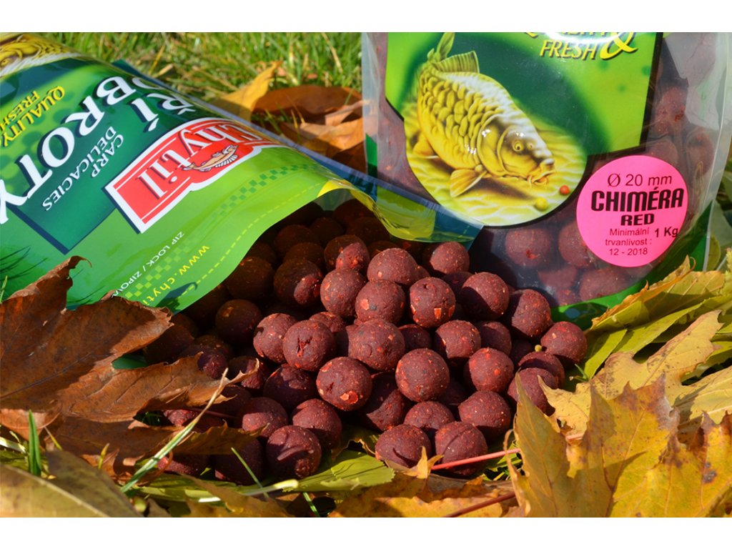 Proto v naší firmě vzniklo nové boilies se stejným názvem, ale ve dvou provedeních. Inspirovali jsme se v mytologii a Chiméra je to správné jméno pro nové boilies. Ve starořeckých bájích měla Chiméra jedno tělo a dvě hlavy …CHIMÉRA od Chytila má jeden název, ale výsledné boilies je buď selektivní s označením RED, nebo produktivní s označením GREEN.