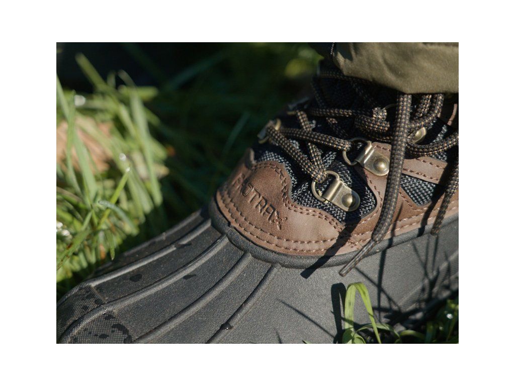Během zimních měsíců je komfort u vody prioritou, právě proto jsme se rozhodli rozšířit zimní sortiment o obuv, která ochrání vaše nohy před chladem i vlhkostí. Vysoké boty Delphin ProTRAX jsou ideální volbou do nevyzpytatelných zimních podmínek, kdy se potřebujete spolehnout na každý krok. Při vývoji byly použity materiály s důrazem na maximální pohodlí. Spodní část je vyrobena z termoplastické gumy, což zaručuje nízkou hmotnost a dlouhou životnost bot. Zvýšený gumový lem sahá až pod kotníky a spolehlivě chrání vaše nohy před vlhkostí při chůzi přes louže, roztátý sníh či bláto. Gumová podrážka se navíc velmi snadno čistí a její protiskluzový vzor poskytuje stabilitu i na kluzkých površích. Vrchní část boty je vyhotovena z kombinace umělé kůže a síťoviny, která udrží vaše nohy v teple i při velmi nízkých teplotách. Ke zvýšení odolnosti vůči chladu přispívá kombinace fleecového materiálu a jemné umělé kožešiny uvnitř boty. Spojení těchto vlastností zajišťuje pohodlí i při vycházkách v extrémním počasí, například při lovu na dírkách, kde bota přichází do přímého kontaktu s ledem. Pohodlné nošení zajišťují kvalitní šňůrky provlečené přes kovová oka. Pro dokonalé zafixování nohou se ve vrchní části po stranách nacházejí čtyři kovové šněrovací háčky. Výška boty je navržena tak, aby poskytovala odolnost i při vydatné sněhové nadílce. Vrchní lem usnadňuje obouvání a umožňuje jej provést rychle a pohodlně. Hnědo-černé barevné provedení dokonale ladí nejen s rybářskými outfity, ale výborně se hodí i k mysliveckému či ostatnímu outdoorovému oblečení. Pokud chcete spolehlivou obuv, která spojuje teplo, pohodlí a odolnost i v extrémních podmínkách, Delphin ProTRAX jsou tou správnou volbou.Doplňkové parametry