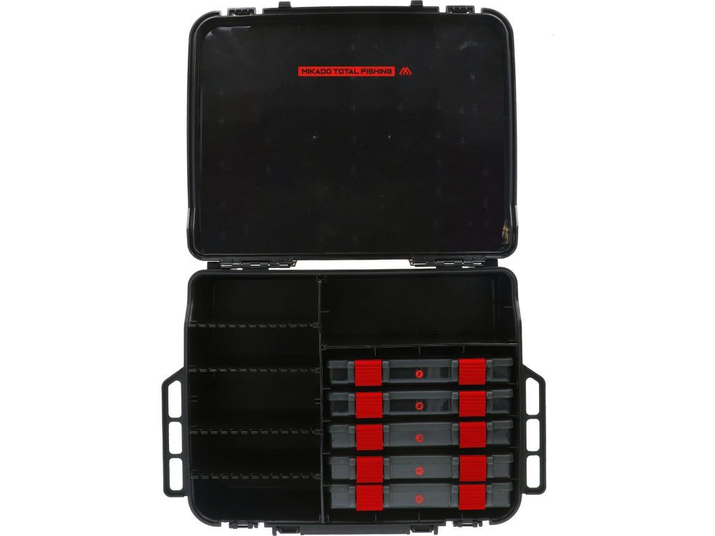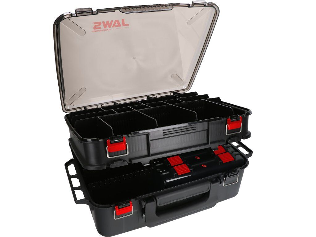 Kvalitní velká krabička se dvěma přihrádkami. Obě přihrádky mají modulární stěny a jsou vyrobeny z odolného plastu. V sadě je 5 krabiček na příslušenství. Silné západky typu flip zajišťují bezpečné uzamčení, zatímco pohodlná rukojeť usnadňuje přepravu.Doplňkové parametry