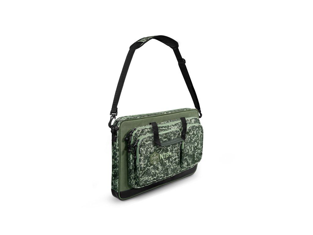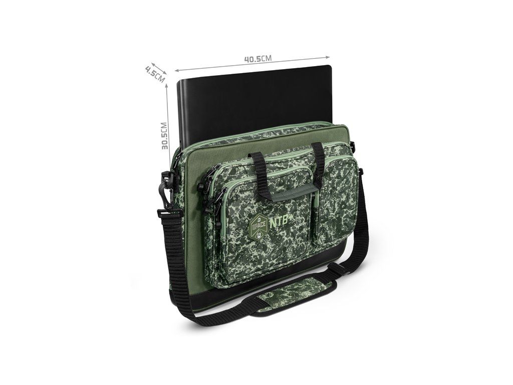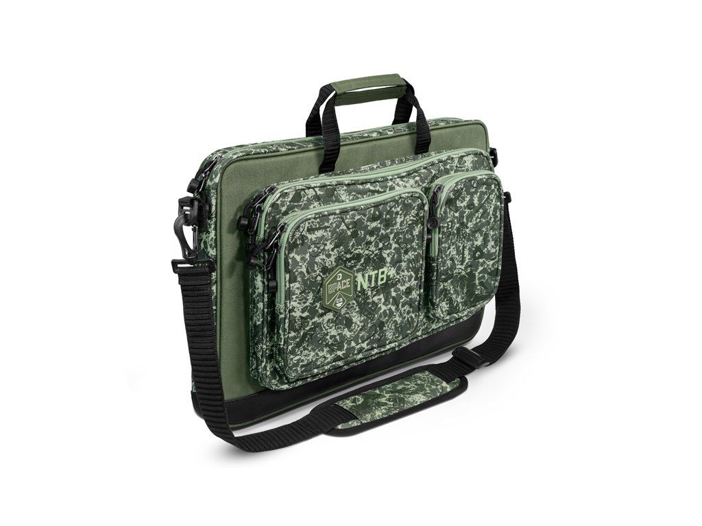 Delphin SPACE je označení pro exkluzivní sérii tašek z dílny značky Delphin. Vyznačuje se špičkovým zpracováním, kvalitními zipy, ale zejména výjimečným designem s použitím C2G kamufláže. Taška Delphin NTB+ byla navržena vzhledem k požadavkům moderní doby, kdy stále větší množství rybářů nosí s sebou k vodě notebook. Ať už ho berete kvůli pracovním povinnostem nebo zábavě, vždy je dobré jej mít během transportu důkladně chráněn. A právě pro tento účel je taška NTB+ jako stvořená. Hlavní komora tašky disponuje dostatečným místem pro uložení všech standardně prodávaných notebooků o rozměru 15,6 palců. Kromě tohoto rozměru lze do pouzdra pohodlně vložit i větší notebooky až do rozměru 17 palců, zde záleží na poměru stran a tloušťce samotného notebooku. Maximální rozměry pro notebook jsou uvedeny níže v tabulce, ale také v galerii obrázků. Díky tvrdým stěnám (PE deska všitá ve stěnách) a měkkému polstrování bude váš notebook důkladně chráněn před nárazy a nechtěným poškozením. Kromě toho se uvnitř nachází velká zipovatelná kapsa umožňující sbalit různé dokumenty. Na přední straně jsou umístěny tři kapsy, přičemž každá z nich má své nepostradatelné využití. Největší kapsa je určena speciálně na nabíječku, přičemž bez problémů pojme i nabíječky s opravdu velkými adaptéry. Dvě menší kapsy zase umožňují sbalení dodatečného příslušenství či psacích potřeb. Spodní strana tašky a boky do výšky 4 cm jsou opatřeny odolnou nepromokavou látkou, díky které se nic neděje ani pokud tašku položíte na mokrou či špinavou zem. Během transportu se o komfort stará mimořádně měkké polstrování popruhu pro zavěšení na rameno či praktické rukojeti pro nošení tašky v ruce. Technické parametry: Celkový rozměr: 43x31x5cm Vnitřní prostor pro notebook: 40.5 x 30.5 x 4.5 cm Rozměr přední velké kapsy: 36x23x4cm Rozměr přední střední kapsy: 20x18x3cm Rozměr přední malé kapsy: 10x19x3cm Stylová patentovaná kamufláž z dílny značky Delphin pod označením C2G má mnoho podob a úhlů pohledu. Přesně tak i její název, který můžeme volně přeložit jako Carpath 2. generace, což přímo odkazuje na jejího předchůdce, ale můžeme jej číst i jako Carpath to Green, tedy přechod myšlenky Carpathu do zelené barvy. Její jedinečnost a nezaměnitelnost spočívá v prvcích, ze kterých je vytvořena. Na první dojem jde o kamufláž tvořenou třemi různými odstíny zelené. Všechno se však změní při detailnějším pohledu, kdy si všimnete siluety kaprů, komponent kaprařské montáže a log značky Delphin spolu s označením C2G. Díky tomuto neopakovatelnému provedení se vaše rybářská výbava okamžitě stane jedinečnou a maximálně originální.Doplňkové parametry