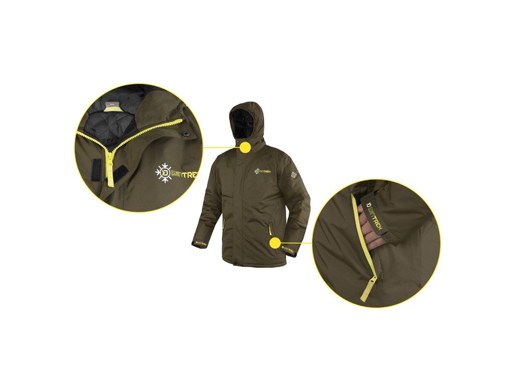 Do chladných, zimních dnů je zde propracované extra teplé oblečení Delphin WinTREK, které poskytne skvělý komfort i během rybaření s teplotami pod bodem mrazu. Vnější tkanina nabízí vodní sloupec 5000mm, což zajistí perfektní ochranu proti dešti i sněhu a udrží vás tak v suchu a v pohodě. Samozřejmostí jsou podlepené švy, silná vnitřní výplň a odolnost vůči větru, zaručující ochranu před nepřízní počasí během vašich rybářských výprav, či jiného pobytu v přírodě. Toto vše vám navíc WinTREK poskytne za mimořádně příznivou pořizovací cenu. Komplet se skládá ze samostatně prodávané bundy a kalhot. Design jsme zvolili v tmavě zelené barvě se zajímavými fluo žlutými prvky, které dodávají oblečení osobitý styl. Bunda Zateplená kapuce je dostatečně velká a po okraji je opatřena gumičkou, která zaručuje lepší přizpůsobivost materiálu. Zapínání bundy je zajištěno pomocí kvalitního silného zipu překrytého pásem látky se suchými zipy a dvěma druky pro lepší zajištění. Rukávy lze na koncích zatáhnout a regulovat díky popruhům na suchý zip a tak důkladně utěsnit ruce před chladem. WinTREK disponuje kapsami na zip po obou stranách, přičemž zipy jsou prošity výraznou žlutou textilií a překryty lemem z voděodolné tkaniny. Na pase se nacházejí dva žluté gumové popruhy určené k utažení ve spodní části. Vnitřní strana je tvořena hladkou prošívanou látkou, díky které se bunda snadno obléká a komfortně se nosí. Kalhoty Zapínání kalhot je zajištěno pomocí kvalitního silného zipu, překrytého pásem látky s drukem pro pevnější zajištění. Spodní část kolem kotníků lze na koncích zatáhnout a regulovat díky popruhům na suchý zip a tak důkladně utěsnit nohy před vodou či chladem. Kalhoty WinTREK disponují kapsami na zip po obou bocích, přičemž zipy jsou prošity výraznou žlutou textilií a překryty lemem z voděodolné tkaniny. Na pase se nacházejí gumové kšandy nastavitelné dle vaší výšky a kompletně odepínatelné na suché zipy. Samotný pás disponuje všitou gumičkou zvyšující jeho flexibilitu a pružnost. Vnitřní strana je tvořena hladkou prošívanou látkou, díky které se kalhoty snadno oblékají a dobře nosí. Při praní doporučujeme použít speciální prací prostředek na funkční oblečení, prát při max. 30°C, neždímat, nežehlit a v případě potřeby použít impregnační přípravek, který obnoví vodoodpudivou úpravu vnějšího materiálu. Technické parametry: Materiálové složení: 100% Polyester Podle přiložené velikostní tabulky si prosím zkontrolujte vyhovující velikost.Doplňkové parametry