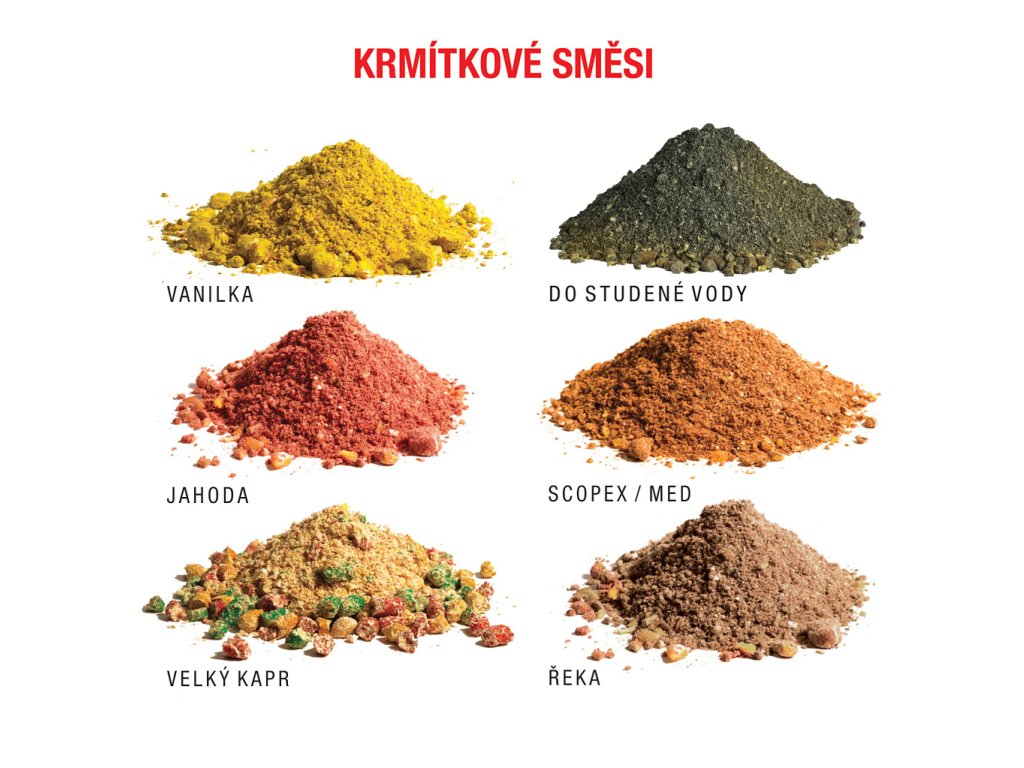 Nové krmítkové směsi mají vysoký obsah proteinů, díky tepelné úpravě jsou lépe stravitelné a navíc obsahují 10 až 15% drobných pelet s kukuřičnými vločkami (corn flakes). Momentálně nabízíme v pěti atraktivních příchutích, které se osvědčily na našich revírech: VANILKA / JAHODA / VELKÝ KAPR / SCOPEX-MED a ŘEKA.