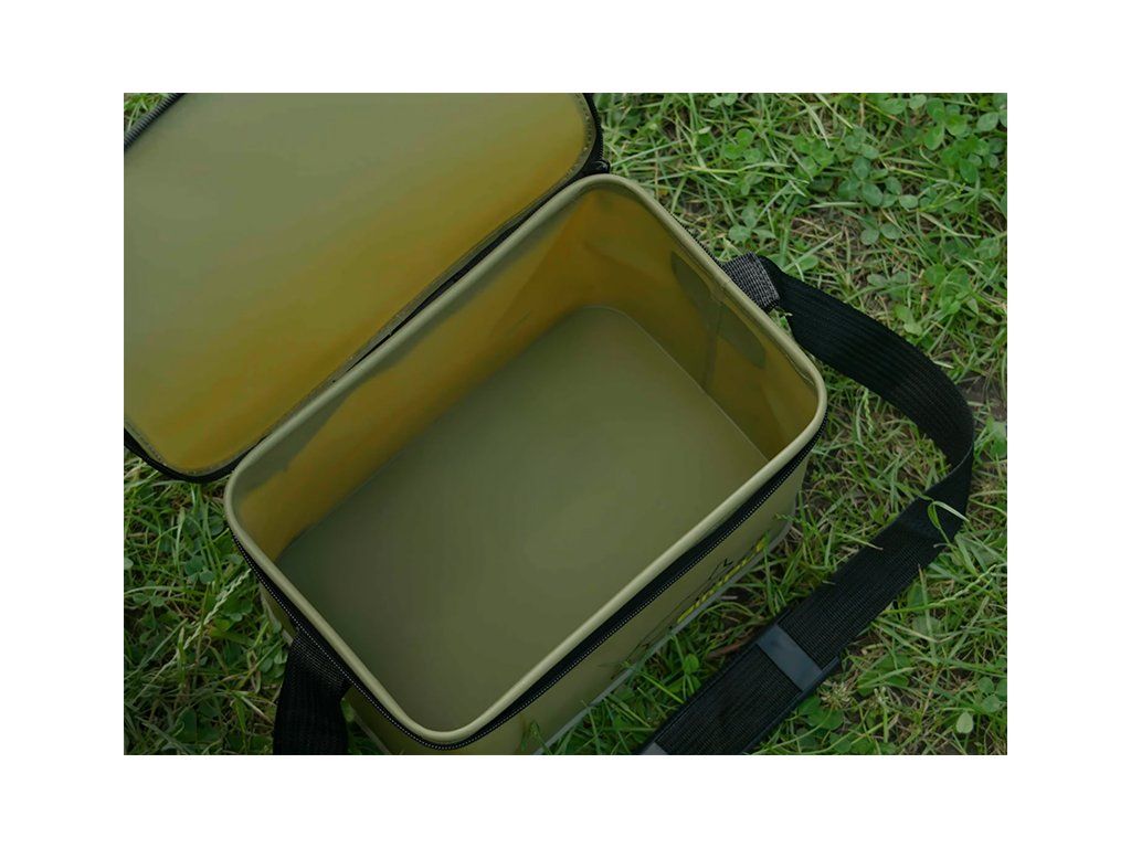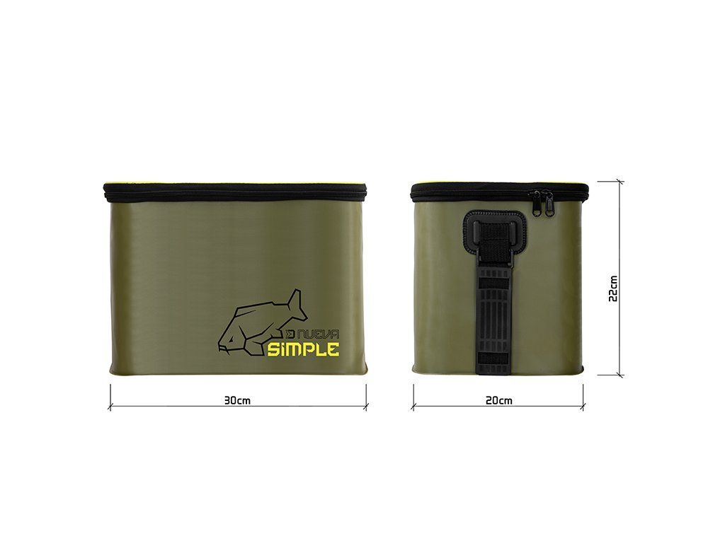 CarryAll taška Delphin NuEVA Simple o rozměrech 30x22x20cm je univerzální rybářská taška vyrobená z EVA materiálu, která poslouží k uskladnění nejrůznějšího rybářského vybavení či různých nástrah a návnad. Díky použitému EVA materiálu a kvalitním svárům je taška nepromokavá, čímž dokonale ochrání obsah uvnitř i v nepříznivých povětrnostních podmínkách. Kromě nepromokavosti je tento materiál také velmi snadno omyvatelný a neabsorbuje pachy. Bez obav tak uvnitř můžete přenášet také různé tekuté potravy, dipy či boostry. Série tašek NuEVA je designována v kombinaci decentní barvy s logem kapra, což potěší množství příznivců kaprařiny. Pro snadný transport je taška opatřena praktickým, délkově nastavitelným popruhem na rameno. Rozměr: 30x22x20cmDoplňkové parametry
