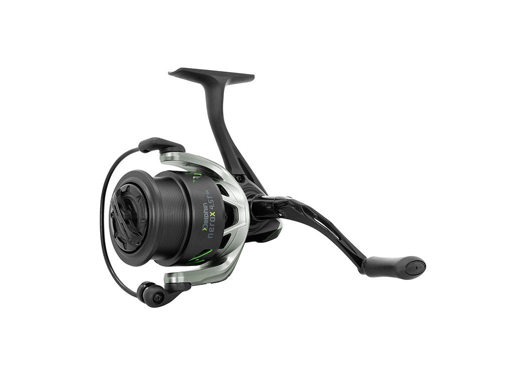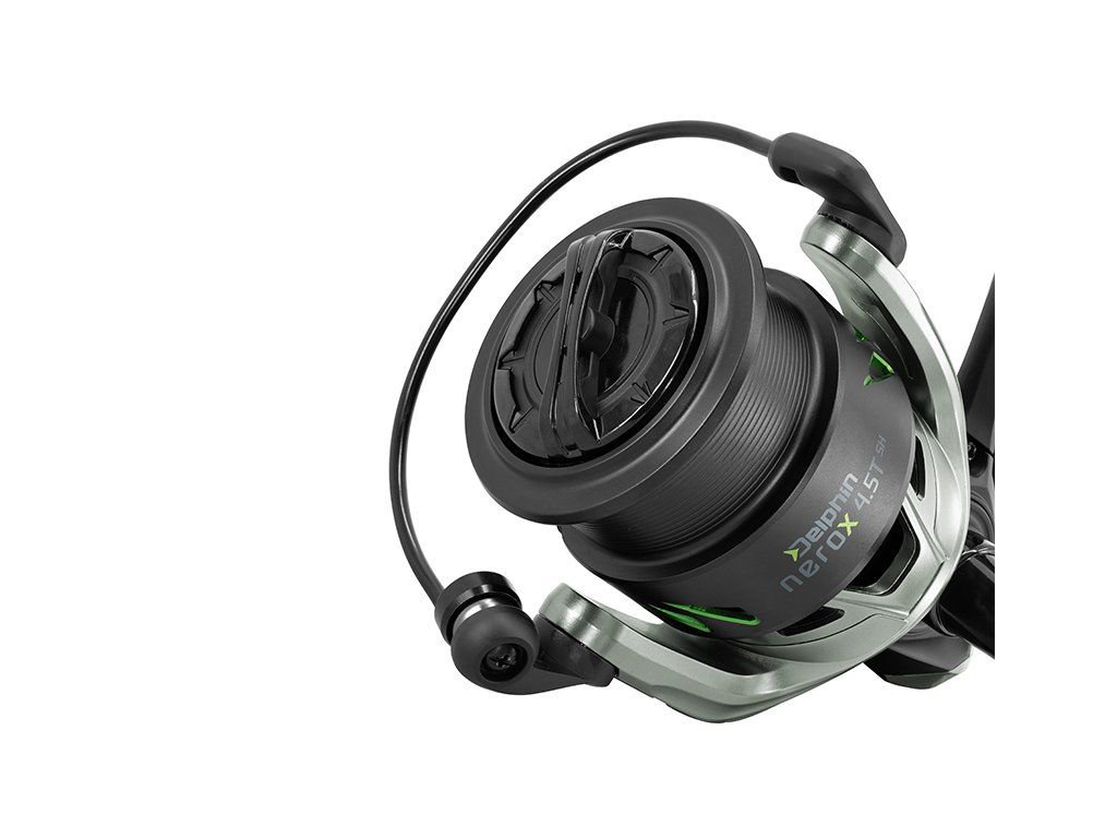 Designově a technicky propracovaný naviják, který překvapí svým výkonem a funkčností i ve srovnání s navijáky z vyšších cenových tříd. NEROX nabízí výjimečně plynulý chod a navíjení s ním je skutečným potěšením. Naviják má speciálně upravenou širokou nízkou a mělkou kovovou cívku o velikosti 4500, což přesně vyhovuje požadavkům cíleného lovu na feeder. Je vybaven sedmi kuličkovými ložisky (6+1) a převodovým poměrem 5.2:1, takže bude pro vás stahování montáží a zdolávání ryb snadné a bezproblémové. Mohutný překlapěč a kovová rolnička zajišťují dostatečnou pevnost a odolnost navijáku. Citlivá a jemná brzda vám napomůže k úspěšnému a bezpečnému zdolání těch největších úlovků. Naviják zaujme svým designem hned na první pohled. Matné černé tělo a cívka v kombinaci s efektně vyřezanými metalickými šedými prvky pod cívkou a otvory v cívce ve výrazné zelené barvě vytváří luxusní vzhled, který perfektně doplňuje řadu feederových produktů REAXE. Lesklá černá klika je ukončena ideálně vytvarovaným gumovým madlem, které vám velmi dobře sedne do ruky. Technické parametry: Naviják Delphin NEROX 4.5T SH Kapacita cívky mm/m: 0.20/180, 0.22/150, 0.24/130 Převodový poměr: 5.2:1 Počet ložisek: 6+1 Hmotnost: 300gDoplňkové parametry