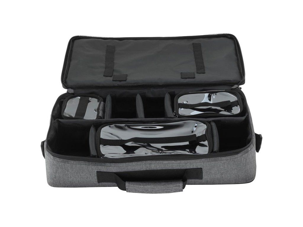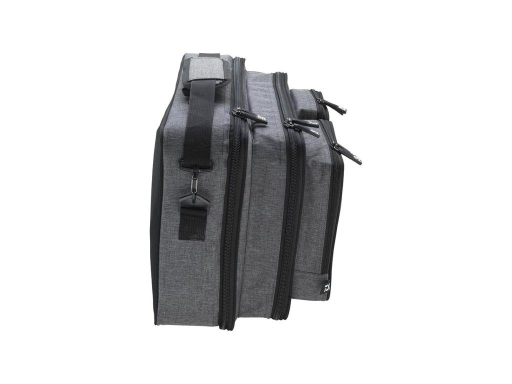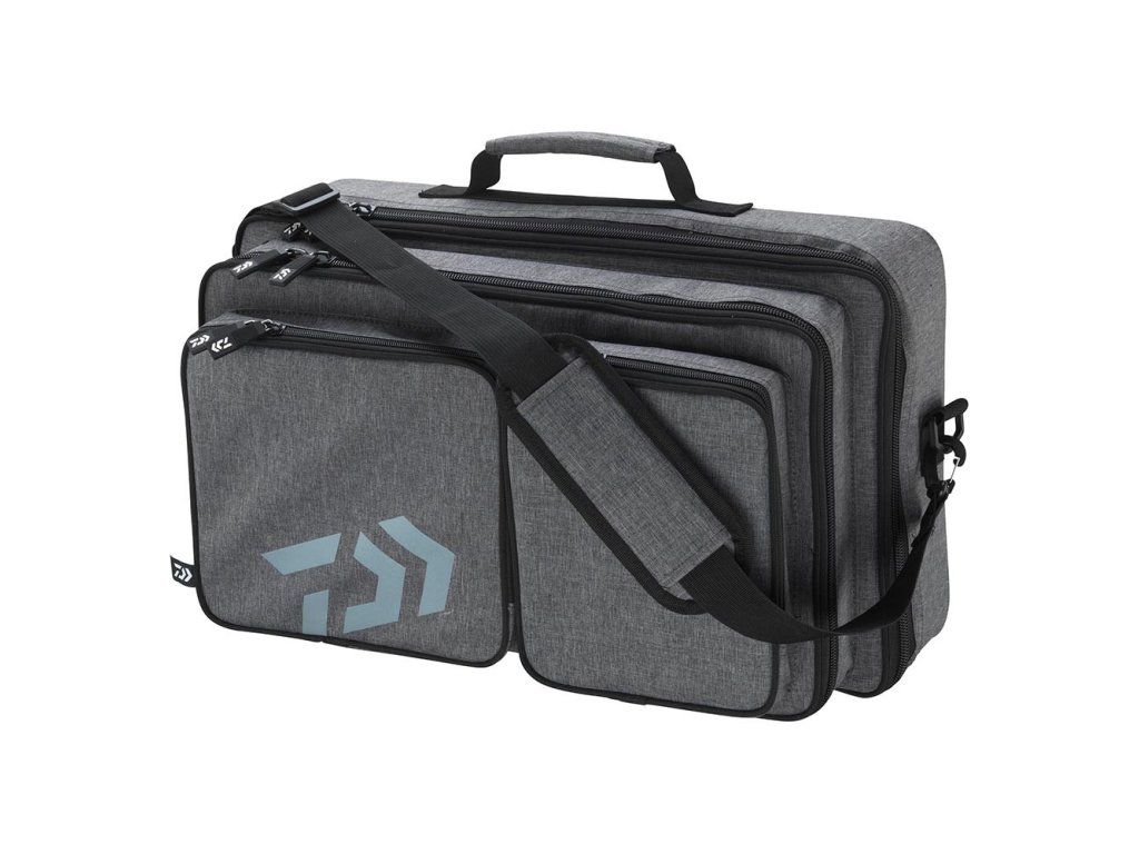 Tato kvalitní taška DAIWA byla speciálně navržena pro potřeby rybářů lovících sumce a oproti předchozí verzi byla vylepšena v mnoha detailech. Robustní šedý polyesterový materiál je vybaven vodoodpudivou funkcí, která zabraňuje okamžitému promočení při krátkých deštích a ve vlhkém prostředí. Dvě velké přední kapsy (26x25cm, 20x25cm) pojmou krabičky na bižuterii, indikátory záběru atd. Horní hlavní přihrádka je vybavena odnímatelnou deskou EVA Rig board na sumcové návazce a vnitřní pevnou horní částí, která zabraňuje proniknutí hrotů háčků do víka. Spodní hlavní přihrádka nabízí obrovský prostor pro různé vybavení, jako jsou navijáky, cívky atd., a lze ji přizpůsobit přesně podle vašich potřeb pomocí vnitřních přepážek. Kromě toho jsou součástí balení tři samostatné malé vnitřní kapsy (30x16x10cm, 18x15x10cm, 15x10x10cm), které poslouží k uložení různých předmětů, jako jsou těžká olova, obratlíky apod. Tím je zajištěn snadný přehled a dobrá organizace všech potřebných sumcových věcí. Vnitřní strana víka je vybavena elastickými popruhy pro uložení a skladování vábniček, dlouhých kleští atd. Pogumované protiskluzové dno je voděodolné a eliminuje nasáknutí vlhkosti z mokré země. Robustní ABS zipy nepodléhají korozi a nabízí vysokou odolnost. Obsahuje polstrovaný nastavitelný ramenní popruh a poutko pro přenášení.Doplňkové parametry