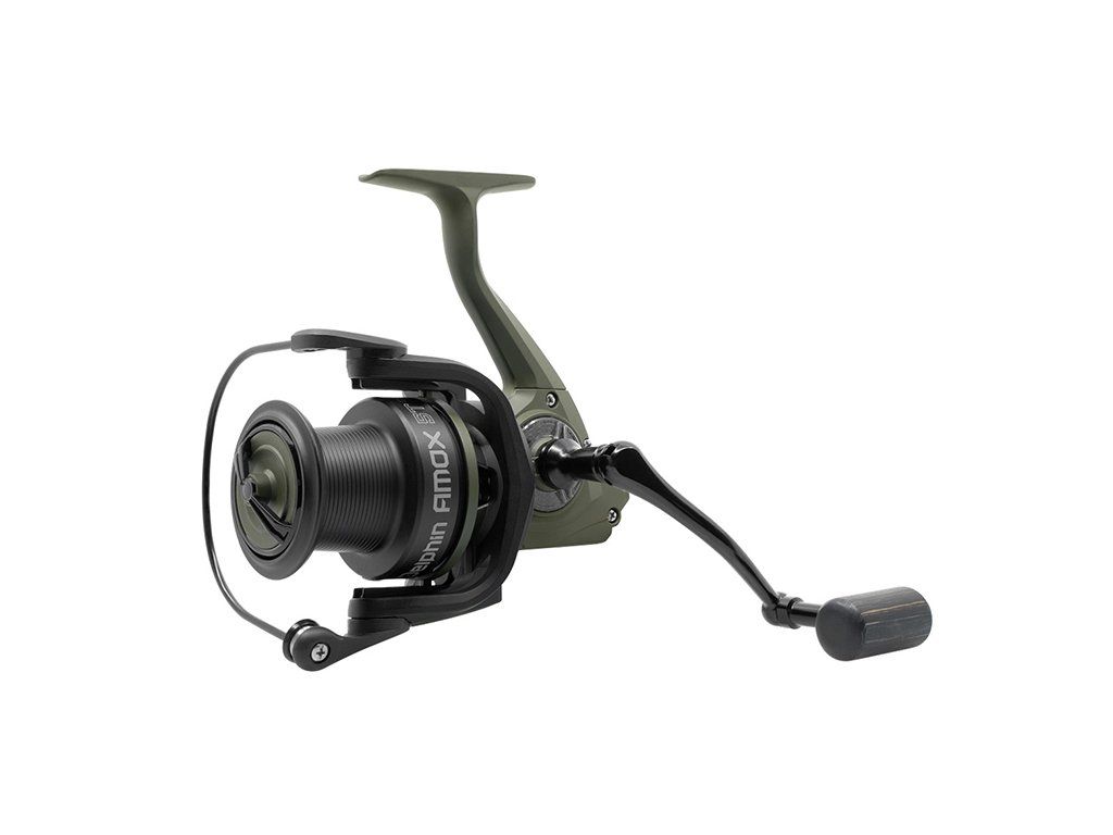 Kompaktní kaprařský naviják ideální pro stalking nebo klasické nahazování na kratší a střední vzdálenosti. Naviják nabízí velmi dobrý výkon při příznivé ceně a poradí si i s těmi největšími rybami bez jakýchkoliv problémů. Disponuje kvalitním vnitřním mechanismem s převodovým poměrem 4.7:1 a až sedmi kuličkovými ložisky, což jej předurčuje k lepším silovým vlastnostem a dlouhé životnosti. Pevná a citlivá brzda napomáhá úspěšnému zdolání úlovků i v těžkých podmínkách. Kovová cívka matné černé barvy má prodloužený tvar a tudíž se z ní velmi snadno a rychle odvíjí vlasec během nahazování. Kvalitní kovová rolnička a překlapěč ze silnějšího drátu přispívají ke zvýšené pevnosti a odolnosti navijáku. Štíhlá kovová klika je ukončena tmavým dřevěným madlem, které se výborně drží v ruce a dodává navijáku exkluzivní vzhled. AMOX je designován do matné zelené barvy v kombinaci s černou, které jsou doplněny lesklými částmi, zajímavými karbonovými prvky a efektními výřezy na těle navijáku. Technické parametry: Delphin AMOX 5T DP | vel. 5000 Kapacita cívky mm/m: 0.25/500, 0.30/350, 0.35/257 Převodový poměr: 4.7:1 Počet ložisek: 6+1 Hmotnost: 430g Delphin AMOX 6T DP | vel. 6000 Kapacita cívky mm/m: 0.25/700, 0.30/490, 0.35/360 Převodový poměr: 4.7:1 Počet ložisek: 6+1 Hmotnost: 442gDoplňkové parametry