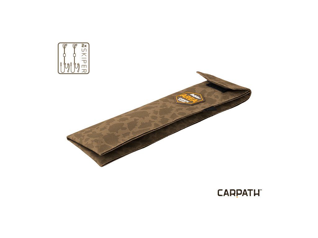 Delphin AREA je špičkově zpracovanou sérií tašek určených pro kaprový rybolov v neopakovatelném designu CARPATH. Bezchybné šití, silné zipy, ergonomické střihy. To je Delphin AREA! Jednoduché a účelné pouzdro, které ochrání vaše závěsné signalizátory s ramínkem před nechtěným poškozením. Samotné pouzdro se skládá ze dvou oddělených kapes, kam pohodlně uložíte 2 signalizátory. Rozměry kapes jsou dostatečné, aby uskladnily 2 signalizátory běžných rozměrů, které se od nynějška nebudou bezcílně povalovat ve vaší výbavě. Pouzdro po zasunutí signalizátorů prostě přeložíte na polovinu a zajistíte suchými zipy. Tak získáte velmi kompaktního pomocníka na rybářské výpravy. Technické parametry: Rozměr tašky: 30x9cm Kamufláž CARPATH je unikátním a patentovaným designovým vzorem, který v sobě skloubil maskovací vizuál kamufláže a siluety kaprů, které tuto kamufláž tvoří. Tento jedinečný a neopakovatelný návrh pochází kompletně z dílny značky Delphin a posouvá hranice vašeho rybářského vybavení do zcela nové dimenze.Doplňkové parametry