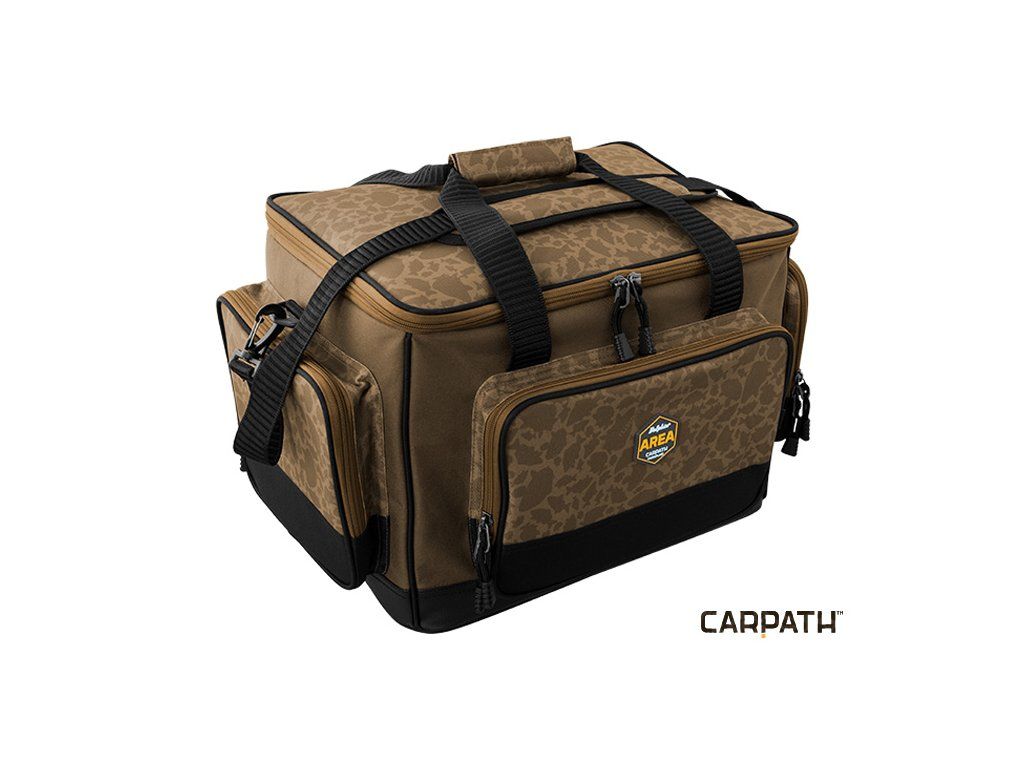 Delphin AREA je špičkově zpracovanou sérií tašek určených pro kaprový rybolov v neopakovatelném designu CARPATH. Bezchybné šití, silné zipy, ergonomické střihy. To je Delphin AREA! Carryall je praktická taška pro uložení rybářského příslušenství. Projektovaná byla s důrazem na praktičnost, trvanlivost a odolnost vůči nepříznivým povětrnostním vlivům. Taška je ze všech stran osazena 6mm polstrováním pro maximální ochranu vašeho příslušenství uvnitř. Celá taška je mimořádně kompaktní a stabilní, i když je úplně prázdná. Celá spodní část tašky je osazena vyztuženou, 5cm vysokou, nepromokavou vrstvou, která dovoluje položení tašky na mokrý povrch či dokonce do vody. Navíc je osazena 3 vnějšími zipovatelnými kapsami pro uložení dalšího rybářského příslušenství. Uvnitř najdete ještě jednu velkou síťovou kapsu. Samotný vnitřek je navržen tak, abyste do něj s lehkostí mohli ukládat další tašky série AREA. Maximální komfort dotváří mimořádně měkké polstrování popruhu pro zavěšení na rameno, či praktické rukojeti pro nošení tašky v ruce. Technické parametry XL: Rozměr tašky: 55x35x30cm Čistý rozměr vnitřního prostoru: 45x30x29cm Rozměr přední kapsy: 30x20x5cm Rozměr boční kapsy: 25x20x5cm Vnitřní síťovaná kapsa: 40x30cm Technické parametry XXL: Rozměr tašky: 60x35x36cm Čistý rozměr vnitřního prostoru: 55x29x32cm Rozměr přední kapsy: 35x25x5cm Rozměr boční kapsy: 25x25x5cm Vnitřní síťovaná kapsa: 48x29cm Kamufláž CARPATH je unikátním a patentovaným designovým vzorem, který v sobě skloubil maskovací vizuál kamufláže a siluety kaprů, které tuto kamufláž tvoří. Tento jedinečný a neopakovatelný návrh pochází kompletně z dílny značky Delphin a posouvá hranice vašeho rybářského vybavení do zcela nové dimenze.Doplňkové parametry