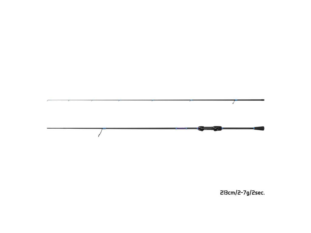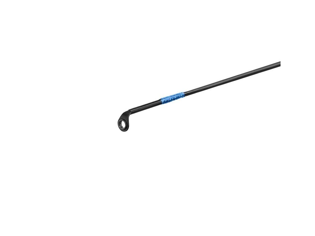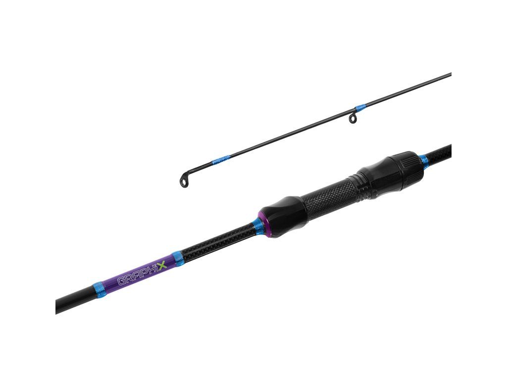 Extra štíhlý blank, rychlá špička a exkluzivní design – i to jsou slova, která charakterizují přívlačový prut GraphiX 24T. Jak název napovídá, prut je postaven na 24T karbonu, který je velmi lehký a zaručuje potřebnou pevnost a zároveň citlivost prutu, takže vám neujde ani ten nejjemnější záběr od vašeho oblíbeného predátora. Prut je vhodný pro lov s tvrdými nástrahami jako woblery, rotačky a plandavky, avšak může být využit také při lovu na měkké nástrahy, což z něj činí univerzálního pomocníka při různých druzích ultra lehké a lehké přívlače. GraphiX nabízíme ve třech délkách s různou gramáží, které vám umožňují vybrat si prut podle své chuti a potřeb. Nejlehčí verze je také nejjemnější a je vhodná pro lov pstruhů, případně okounů. Při střední délce je prut pevnější, avšak stále má jemnou a citlivou špičku, která jej předurčuje k lovu středně velkých dravců. Varianta s nejvyšší vrhací zátěží disponuje z této trojice největší silovou rezervou a tedy najde vyžití např. při lovu candáta. Sedlo prutu je velmi lehké a díky ergonomickému tvaru se skvěle drží v ruce. Po celé délce jsme použili jednostopková očka s modrým metalickým vinutím, která jsou rozmístěna tak, aby zaručovala rovnoměrné rozmístění síly a optimální vyvážení prutu. Povrchová úprava je matná, doplněná lesklým povrchem na rukojeti s efektním 3K karbonovým motivem. Technické parametry Model: 1,85m/0,5-5g Počet dílů: 2 Průměr blanku nad rukojetí: 6,9mm Počet oček: 8 Transportní délka: 94cm Hmotnost: 82g Rukojeť: dělená, EVA pěna Délka rukojeti (od spodní části po střed sedla): 25,5cm Model: 2,13m/2-7g Počet dílů: 2 Průměr blanku nad rukojetí: 8,6mm Počet oček: 8 Transportní délka: 110cm Hmotnost: 84g Rukojeť: dělená, EVA pěna Délka rukojeti (od spodní části po střed sedla): 27,5cm Model: 2,28m/3-18g Počet dílů: 2 Průměr blanku nad rukojetí: 9,1mm Počet oček: 9 Transportní délka: 117cm Hmotnost: 102g Rukojeť: dělená, EVA pěna Délka rukojeti (od spodní části po střed sedla): 29,5cmDoplňkové parametry