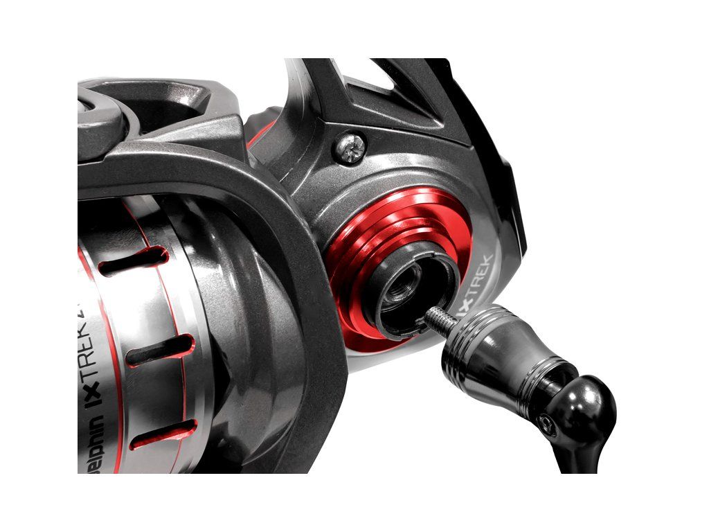 IXTREK rozšiřuje rodinu kompaktních navijáků s přední brzdou o kvalitní model za přijatelnou cenu. Ať už jste příznivcem přívlače, feederu nebo lovu na splávek, s navijákem Delphin IXTREK si rozhodně přijdete na své. Tmavé provedení s červenými doplňky z něj dělá designově opravdu exkluzivní model. Základním pilířem navijáku je osvědčený mechanismus s dokonale vyváženým rotorem, díky kterému je chod velmi hladký a plynulý. Tělo z lehkého kompozitového materiálu zajišťuje dlouhou životnost a skvělou odolnost vůči mechanickému poškození. Klika navijáku IXTREK se k tělu upevňuje našroubováním do vnitřní matice, čímž je minimalizována její vůle a upevnění je tak velmi spolehlivé. Samotné madlo kliky má pogumovaný povrch a na dotek je velmi příjemné a pohodlné. Kromě toho efektně dotváří naviják po estetické stránce. Naviják je dostupný ve třech různých velikostech, díky čemuž si s ním užijete spoustu zábavy při různých rybolovných technikách. Navíc je možné dle potřeby dokoupit ke každé velikosti samostatné kovové cívky, ale také dodatečné karbonové podložky brzdy. Technické parametry: Model: Delphin IXTREK 2T Kapacita navijáku mm / m: 0.12/350, 0.14/250, 0.18/150 Převodový poměr: 5.1:1 Počet ložisek: 6+1 Hmotnost: 246g Model: Delphin IXTREK 3T Kapacita navijáku mm / m: 0.14/360, 0.18/215, 0.20/175 Převodový poměr: 5.1:1 Počet ložisek: 6+1 Hmotnost: 254g Model: Delphin IXTREK 4T Kapacita navijáku mm / m: 0.18/315, 0.20/255, 0.22/210 Převodový poměr: 5.1:1 Počet ložisek: 6+1 Hmotnost: 289g Model: Delphin IXTREK 5T Kapacita navijáku mm / m: 0.22/440, 0.24/370, 0.26/310 Převodový poměr: 5.0:1 Počet ložisek: 6+1 Hmotnost: 310gDoplňkové parametry