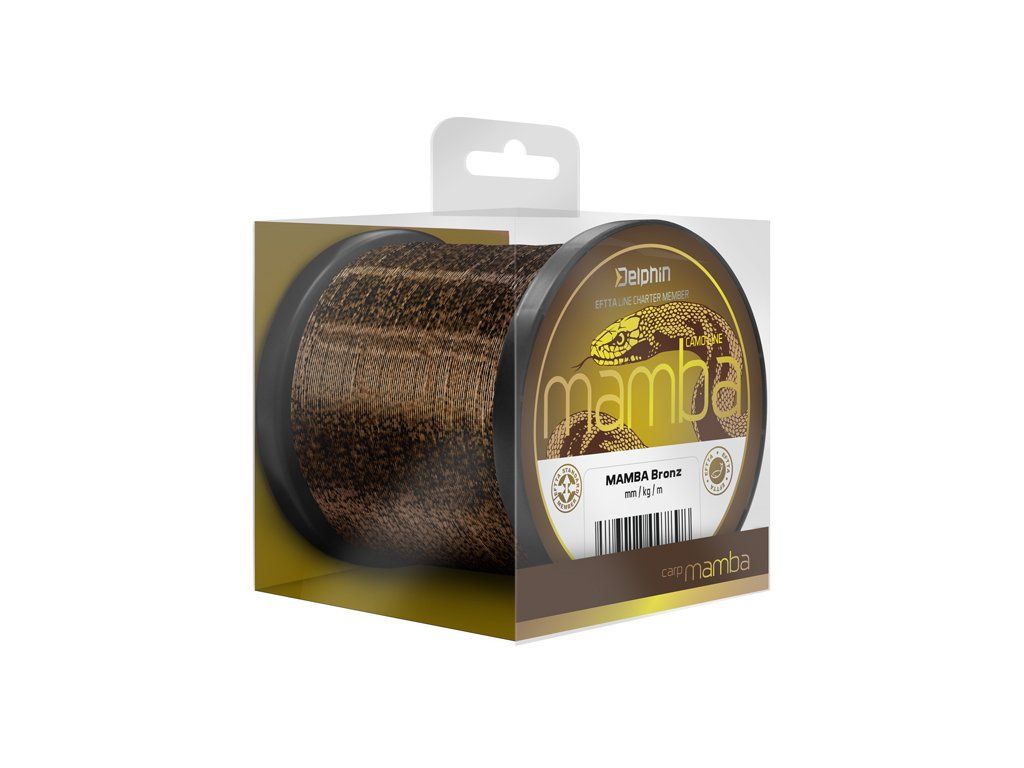 Excelentní kaprařský vlasec s unikátním 3D vzorem. MAMBA disponuje vynikajícími vlastnostmi jako pevnost a nosnost v uzlu. Díky svému jedinečnému kamuflážovému provedení rychle splyne s okolním prostředím. Jeho pevnost a odolnost vůči oděru ho předurčují k použití i do náročných podmínek a jeho mimořádně hladký a jemný povrch umožňuje využití při dalekém nahazování. Díky těmto vlastnostem je Delphin MAMBA považován za univerzální kaprařský vlasec, který splňuje ty nejnáročnější požadavky, a na který se můžete spolehnout v každé situaci. MM/KG: 0.26mm/5,2kg, 0.28mm/6,1kg, 0.30mm/7,0kg, 0.32mm/7,4kg, 0.34mm/8,1kgDoplňkové parametry