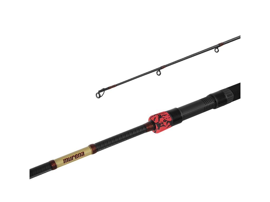 Po úspěšné řadě MURENA jsme si připravili speciál, který jsme zesílili a udělali tak novou generaci s názvem MURENA POWER. Excelentně tenký blank s vrhací zátěží až 125g!! předurčuje tento prut pro ty největší výzvy při lovu dravců. Plná rukojeť z vytvarované EVA pěny s červeno-černou koncovkou je přizpůsobena těžké přívlači. Díky takovému provedení rukojeti a použitého blanku se do prutu můžete pořádně opřít při nahazování ale i zdolávání, a tím posunout level lovu na vyšší úroveň. Blank prutu v matné černé barvě je zpevněn vinutím po celé délce, čímž je ještě rychlejší, razantnější při záseku a odolnější vůči poškození. Pokud jste dosud hledali pravého spolubojovníka, který vás vždy podrží na vycházkách za velkými dravci, je tady! Prut, který se nezalekne ničeho! MURENA POWER! Pro lov ze člunu bychom doporučili dvě verze 210cm, 240cm a pro lov ze břehu jsou vhodnější volbou pruty v délkách 270cm a 300cm. Technické parametry: Model: 210cm/125g Počet dílů: 2 Průměr blanku nad rukojetí: 10,9mm Počet oček: 7 Transportní délka: 110cm Hmotnost: 210g Rukojeť: EVA pěna> Délka rukojeti (od spodní části prutu po střed sedla): 45cm Model: 240cm/125g Počet dílů: 2 Průměr blanku nad rukojetí: 12,2mm Počet oček: 8 Transportní délka: 125cm Hmotnost: 242g Rukojeť: EVA pěna Délka rukojeti (od spodní části prutu po střed sedla): 48cm Model: 270cm/125g Počet dílů: 2 Průměr blanku nad rukojetí: 12,6mm Počet oček: 9 Transportní délka: 140cm Hmotnost: 268g Rukojeť: EVA pěna Délka rukojeti (od spodní části prutu po střed sedla): 50cm Model: 300cm/125g Počet dílů: 2 Průměr blanku nad rukojetí: 13,6mm Počet oček: 10 Transportní délka: 155cm Hmotnost: 306g Rukojeť: EVA pěna Délka rukojeti (od spodní části prutu po střed sedla): 52cmDoplňkové parametry