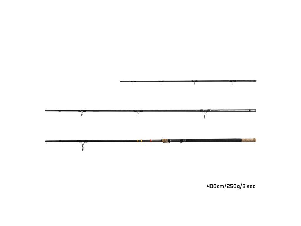 RIVER TROPHY NXT XTREME je podobně jako verze NXT určená pro feederový lov říčních ryb v proudu řek, na místech kde je nutno použít tuhý prut s vysokou vrhací zátěží. V tomto případě však blank disponuje ještě větší silou, což jej přímo předurčuje k lovu v opravdu extrémních podmínkách. Díky 24T uhlíkovému pevnému blanku s ním dokážete zastavit i silné unikající ryby, přičemž však vůbec neztrácíte výhody feederového prutu. Blank disponuje vrhací zátěží až 250g, což umožňuje použít těžké feedrové košíčky, které jsou v říčním proudu nutností. Ve spodní části blanku nad rukojetí je páteř prutu zesílená tmavou křížovou punčochou, jako tomu bylo i v případě předchozího modelu. Na zbytek blanku byla použita technologie PowerWrap, která zaujme již při prvním kontaktu s prutem. Její podstata spočívá v dodatečném vinutí karbonu kolem blanku, kterým je dosaženo značného zvýšení pevnosti a odolnosti vůči přetížení, což v praxi znamená mnohem vyšší životnost a snížení náchylnosti k mechanickému poškození. Jednotlivé díly prutu jsou zesíleny ocelovým PowerJoin kroužkem, který minimalizuje možnost tříštivého poškození spoje. RIVER TROPHY NXT XTREME disponuje kvalitními očky se SIC výplní a pevným sedlem navijáku. Jedním z nejzajímavějších prvků prutu je bezesporu jeho do detailů propracovaná rukojeť. Navržena je z kombinace materiálů EVA a RUBBER CORKu, což dohromady vytváří designově nádherný celek. Vzhledem k charakteru blanku se prut dodává s 2 karbonovými a 2 CarbonGlass špičkami, se zvětšenými vodícími očky. Model: 400cm / 250g Počet dílů: 3 Průměr blanku nad rukojetí: 15,8mm Počet oček (prut + špička): 8 + 5 Transportní délka: 139cm Hmotnost: 370g Rukojeť: EVA pěna + RUBBER CORK Délka rukojeti (od spodní části prutu po střed sedla): 53cm Průměr špičky: 3,2mm Špičky: 2xCarbonGlass (Light, Medium), 2xCarbon (Heavy, U-Heavy)Doplňkové parametry