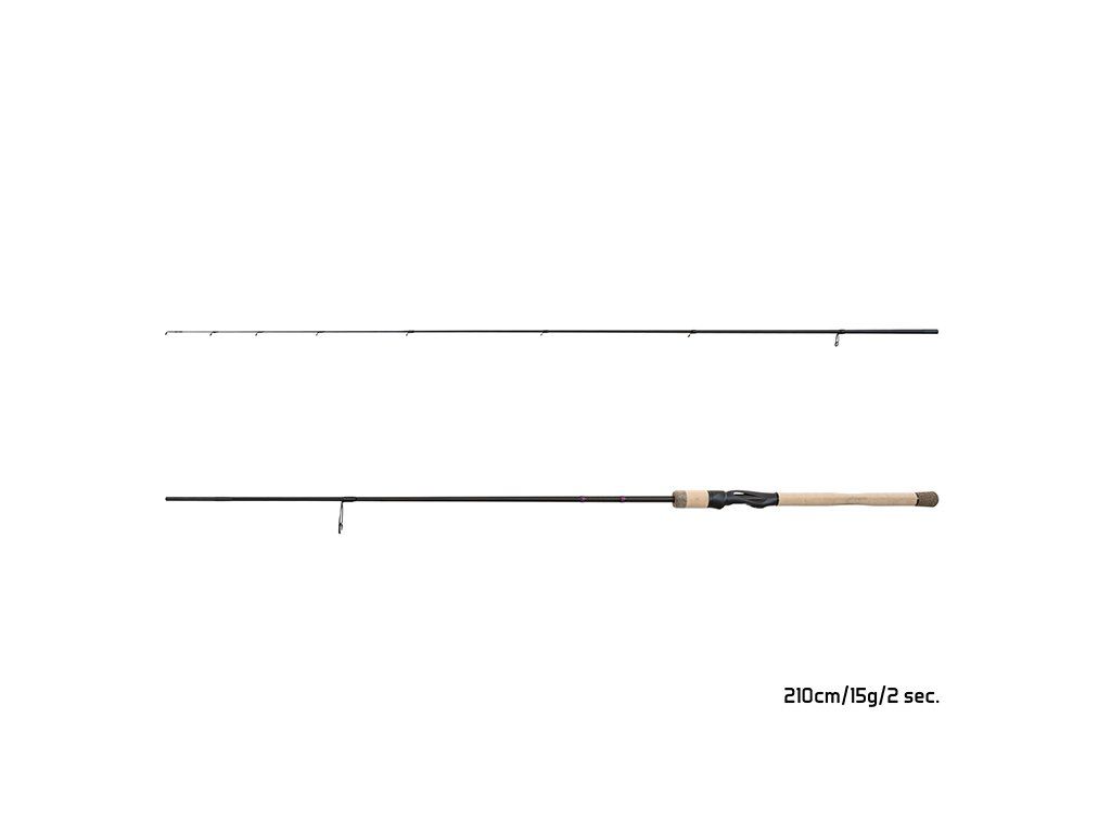 Je štíhlý, lehký a perfektně vyvážený prut pro všechny milovníky lovu dravých ryb pomocí přívlače. Díky rychlé akci a vysoké citlivosti je prut obzvlášť vhodný pro lov pomocí měkkých umělých nástrah formou jiggingu. Prut je vyhotoven ve třech velikostech, a tím je vhodný pro použití široké škály umělých nástrah a lovených ryb. V nejtěžší verzi je vhodný pro lov candátů a štik, u nejlehčí verze si zase naplno vychutnáte lov okounů a pstruhů. Blank vyrobený z 30T karbonu se vyznačuje rychlou akcí a zároveň dostatečnou silou pro přesné a daleké nahazování. Díky použití moderní technologie výroby blanku jsme dokázali vytvořit velmi citlivou špičku, která umožňuje skrze nástrahu „cítit“ všechny nerovnosti dna. Vysokou citlivost oceníte i při detekci nejjemnějších záběrů, které se přes tubulární špičku okamžitě přenášejí až do sedla navijáku a ruce lovce. Blank prutu je osazen kvalitními SeaGuide Zirconia očky, která jsou specifická nízkou hmotností a vysokou odolností a pevností. Očka jsou navíc optimálně rozmístěna pro maximální vzdálenost nahazování a umožňují dokonalé rozmístění tlaku na blank prutu. Ergonomicky tvarované sedlo je velice pohodlné a umožňuje celodenní výpravy bez zbytečné námahy. U tohoto prutu jsme použili jako materiál rukojeti vysoce kvalitní korek, který potěší zejména milovníky klasického designu. Scandal je kvalitní prut za rozumnou cenu, který ocení každý správný vláčkař, ať už je to začátečník nebo profesionál. Technické parametry: Model: Delphin SCANDAL SPIN | 200cm/10g Počet dílů: 2 Průměr blanku nad rukojetí: 9,1mm Počet oček: 8 Transportní délka: 104cm Hmotnost: 98g Rukojeť: Cork Délka rukojeti (od spodní části po střed sedla): 29,5cm Model: Delphin SCANDAL SPIN | 210cm/15g Počet dílů: 2 Průměr blanku nad rukojetí: 9,4mm Počet oček: 9 Transportní délka: 109cm Hmotnost: 108g Rukojeť: Cork Délka rukojeti (od spodní části po střed sedla): 30,5cm Model: Delphin SCANDAL SPIN | 220cm/25g Počet dílů: 2 Průměr blanku nad rukojetí: 9,6mm Počet oček: 9 Transportní délka: 115cm Hmotnost: 120g Rukojeť: Cork Délka rukojeti (od spodní části po střed sedla): 31,5cm Model: Delphin SCANDAL SPIN | 250cm/30g Počet dílů: 2 Průměr blanku nad rukojetí: 10,6mm Počet oček: 8 Transportní délka: 129cm Hmotnost: 148g Rukojeť: Cork Délka rukojeti (od spodní části po střed sedla): 33,5cmDoplňkové parametry