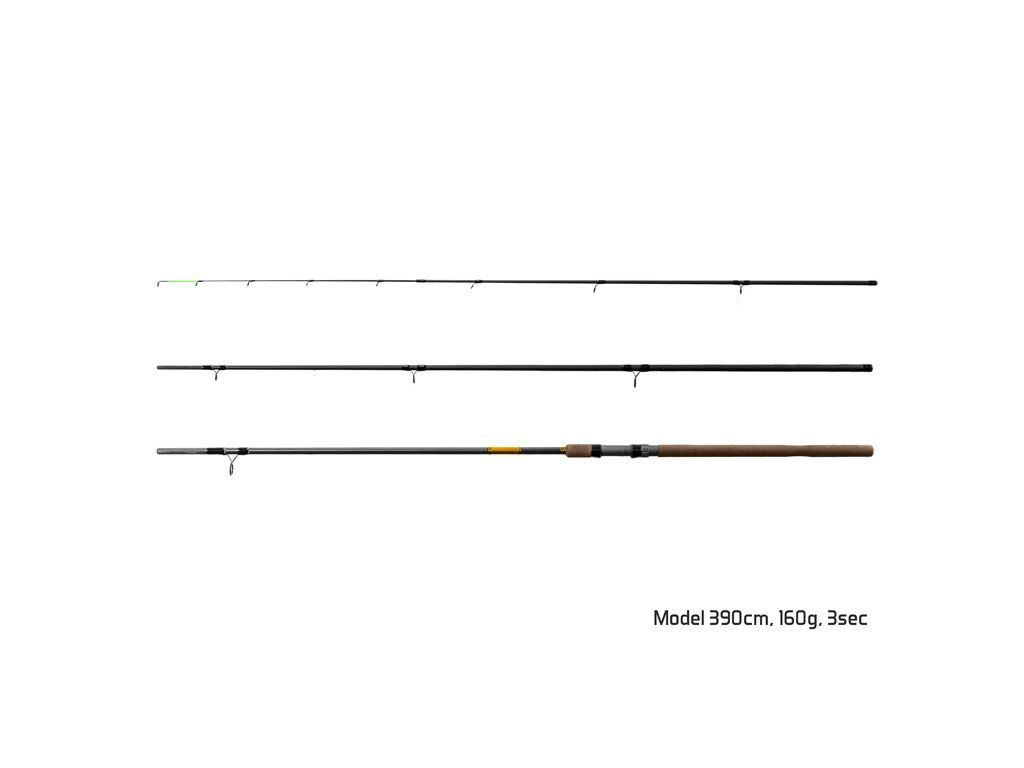 Delphin SYMBOL Feeder je oblíbená série feederových prutů, která si už v první generaci vysloužila pověst spolehlivých ''držáků'' a neúnavných "pracantů". Druhá generace Symbolu navíc nabízí zcela nový atraktivní design, který rázem mění dosud výhradně černou sérii na designový kousek, který vizuálem a schopnostmi patří minimálně o jednu třídu výše. Cenovka řadí tento prut mezi pruty vstupního segmentu, ale jeho kvality předčí i vaše nejoptimističtější očekávání. Štíhlý matný strukturovaný blank, měděné detaily a nevšední, velmi příjemná hnědá rukojeť. Samozřejmostí jsou spolehlivé a ověřené DPS sedlo, které pojme i rozměrnější navijáky a kvalitní dvoustopá SiC očka. DPS sedlo navijáku je vhodné i na osazení větších navijáků. V základním balení se k prutu dodávají 3 špičky. Dokoupit si můžete špičky light, medium a heavy. SYMBOL Feeder je designově zajímavý prut se skvělým poměrem ceny a kvality, se kterým si užijete lov i na řekách s těžkými montážemi a nebude s ním problém zdolat i ty největší ryby. Technické parametry: Model 330cm/100g Počet dílů: 3 Průměr blanku nad rukojetí: 12,50mm Počet oček: 11 Transportní délka: 115cm Hmotnost: 218g Rukojeť: EVA pena Délka rukojeti (od spodní části prutu po střed sedla): 45cm Průměr špičky: 3mm Model 360cm / 120g Počet dílů: 3 Průměr blanku nad rukojetí: 11,13mm Počet oček: 11 Transportní délka: 125cm Hmotnost: 254g Rukojeť: EVA pěna Délka rukojeti (od spodní části prutu po střed sedla): 48cm Průměr špičky: 3mm Model 360cm / 140g Počet dílů: 3 Průměr blanku nad rukojetí: 11,89mm Počet oček: 11 Transportní délka: 125cm Hmotnost: 268g Rukojeť: EVA pěna Délka rukojeti (od spodní části prutu po střed sedla): 48cm Průměr špičky: 3mm Model 390cm / 160g Počet dílů: 3 Průměr blanku nad rukojetí: 13,45mm Počet oček: 12 Transportní délka: 136cm Hmotnost: 293g Rukojeť: EVA pěna Délka rukojeti (od spodní části prutu po střed sedla): 50cm Průměr špičky: 3mmDoplňkové parametry