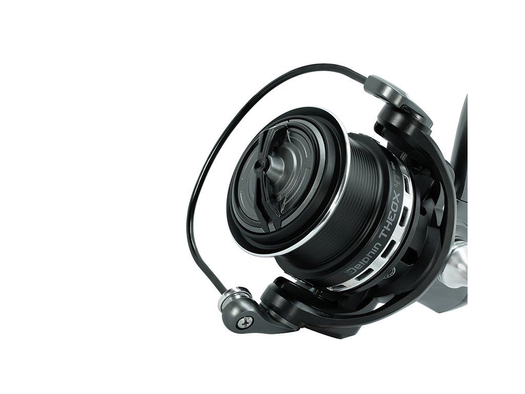Elegantní design, kompaktní velikost a špičkové vlastnosti – i tak by se dal v krátkosti popsat model Delphin THEOX, který byl speciálně navržen pro lov feederovou technikou. Jeho rozměry jej předurčují k použití při klasickém feederu, ale i při lovu na method feeder. Model THEOX disponuje 6 kuličkovými ložisky, která se starají o plynulý a tichý chod. Spolehlivý převodový mechanismus s poměrem 5.1:1 zaručuje jistotu při zdolávání ryb a zároveň umožňuje rychlé stažení montáže při přehazování, díky čemuž bude váš lov efektivnější. Cívka, kterou je naviják vybaven, poutá pozornost nejen designovým zpracováním, ale také svými technickými parametry. Mělká, ale dostatečně široká cívka umožňuje precizní navinutí vlasce a minimalizuje tření. Odvíjení je tak maximálně plynulé, což oceníte zejména při přesných hodech na delší vzdálenosti. Na cívce se navíc nachází odhozová hrana, která snižuje tření při nahazování a tak budou vaše hody ještě o něco déle. Jelikož při lovu na feeder je přesnost klíčová, cívku jsme vybavili dvěma kovovými klipy. Pod cívkou se nachází plastová ochrana, která zabraňuje vniknutí vlasce pod cívku při nahazování. Naviják disponuje pomalou přední brzdou, která umožňuje přesné přizpůsobení brzdné síly podle aktuálních podmínek při zdolávání. Kovová klika je k navijáku připevněna pomocí technologie Screw-In, což znamená, že se zatáčí přímo do matice v těle navijáku. Díky tomu se eliminuje jakákoli vůle. Pro maximální komfort při manipulaci je klika vybavena pogumovaným madlem, které dokonale sedne do ruky. Elegantní tmavý design s jemnými stříbrnými prvky činí z modelu Delphin THEOX naviják, který se hodí téměř ke všem barevným kombinacím. Díky své spolehlivosti a špičkovým vlastnostem se stane každá výprava pohodlnější a efektivnější. Technické rozměry: Delphin THEOX 4T SH vel. S 4000 Kapacita cívky mm/m: 0.18/309, 0.20/250, 0.22/200 Převodový poměr: 5.1:1 Návin na jedno otočení kliky: 83cm Počet ložisek: 5+1 Hmotnost: 314g Delphin THEOX 5T SH vel. S 5000 Kapacita cívky mm/m: 0.20/400, 0.22/330, 0.24/278 Převodový poměr: 5.2:1 Návin na jedno otočení kliky: 85cm Počet ložisek: 5+1 Hmotnost: 380gDoplňkové parametry