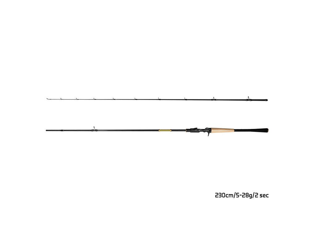 Po úspěšných řadách ZANDERA a ZANDERA XCS 40T jsme využili všech dostupných zkušeností a rozhodli jsme se rozšířit řadu hlavně pro milovníky baitcastové přívlačové techniky o model ZANDERA B'CAST. Extrémně citlivý, rychlý prut se špičkovou akcí přesně definuje vlastnosti prutu ZANDERA B'CAST. Prut je postaven na kvalitním 30T karbonovém blanku. Vlastnosti blanku okouzlí svou extrémní rychlostí, ale zároveň lovci dopřejí požitek při zdolávání úlovku. Blank je osazen větším počtem oček (renomované značky SeaGUIDE) než klasický přívlačový prut. Rozmístění oček je přesně vyměřeno, kvůli hladšímu chodu vlasce a přesnějším hodům. Pohodlné, ergonomicky postavené SeaGUIDE sedlo vám zpříjemní celodenní rybaření. Už více nebudete pociťovat nepohodlné uchopení, které vám často zapříčiňuje nepříjemné brnění prstů. Dělená rukojeť, postavená na kombinaci korku a FullShrink EVA pěny, je navržena, aby co nejméně zatěžovala ruku během manipulace s prutem a zpříjemnila tím celkový požitek z celodenního lovu. Zlaté designové prvky velmi vkusně doplňují celkový vizuál, a tím poukazují na vyjímečnost modelu ZANDERA B‘CAST. Baitcastové pruty jsou vhodné i pro vertikální lov ze člunu, kde vám zajistí 100% kontakt s nástrahou. Technické parametry: Model: 210cm/3-21g Počet dílů: 2 Průměr blanku nad rukojetí: 9,7mm Počet oček: 10 Transportní délka: 110cm Hmotnost: 126g Rukojeť: dělená, Korek + FullShrink EVA pěna Délka rukojeti (od spodní části prutu po střed sedla): 34,5cm Model: 210cm/5-28g Počet dílů: 2 Průměr blanku nad rukojetí: 10,2mm Počet oček: 10 Transportní délka: 110cm Hmotnost: 130g Rukojeť: dělená, Korek + FullShrink EVA pěna Délka rukojeti (od spodní části prutu po střed sedla): 34,5cm Model: 210cm/7-32g Počet dílů: 2 Průměr blanku nad rukojetí: 10,6mm Počet oček: 10 Transportní délka: 110cm Hmotnost: 146g Rukojeť: dělená, Korek + FullShrink EVA pěna Délka rukojeti (od spodní části prutu po střed sedla): 34,5cm Model: 230cm/3-21g Počet dílů: 2 Průměr blanku nad rukojetí: 10,3mm Počet oček: 11 Transportní délka: 120cm Hmotnost: 136g Rukojeť: dělená, Korek + FullShrink EVA pěna Délka rukojeti (od spodní části prutu po střed sedla): 36,5cm Model: 230cm/5-28g Počet dílů: 2 Průměr blanku nad rukojetí: 10,6mm Počet oček: 11 Transportní délka: 120cm Hmotnost: 136g Rukojeť: dělená, Korek + FullShrink EVA pěna Délka rukojeti (od spodní části prutu po střed sedla): 36,5cm Model: 230cm/7-32g Počet dílů: 2 Průměr blanku nad rukojetí: 10,9mm Počet oček: 11 Transportní délka: 120cm Hmotnost: 152g Rukojeť: dělená, Korek + FullShrink EVA pěna Délka rukojeti (od spodní části prutu po střed sedla): 36,5cmDoplňkové parametry