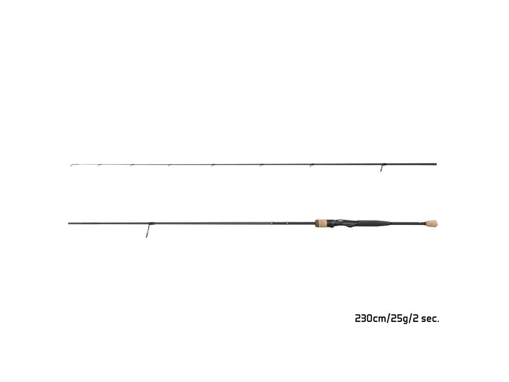 Nízká hmotnost, dokonalé vyvážení a vynikající akce – takto by se ve zkratce dal charakterizovat přívlačový prut Delphin ZANDIT. Tento prut si oblíbí zejména rybáři, kteří hledají ideální nástroj pro lov candátů a velkých okounů na měkké nástrahy. Štíhlý blank, postavený na 30T karbonu, zajišťuje prutu nízkou hmotnost a zároveň si zachovává dostatečnou pevnost, která umožňuje razantní zásek. V kombinaci s rychlou akcí, kterou se ZANDIT vyznačuje, dokážete nástrahu nahodit dostatečně daleko a s excelentní přesností na lovné místo. Další výjimečnou vlastností, která odlišuje tento prut od konkurence v jeho cenové kategorii, je vlepovaná karbonová špička. Tato špička nabízí zvýšenou citlivost, která umožňuje precizní vedení nástrahy. Určitě ji oceníte i v situacích, kdy se rybám moc nechce a je potřeba detekovat i nejjemnější záběr. Celý prut je osazen jednostopými zirkoniovými očky značky SeaGuide s výjimečně tvrdou a odolnou výplní. Rozmístění oček je navrženo tak, aby optimálně rozložilo sílu působící na prut při zdolávání ryby. Pro zvýšení komfortu celý prut doplňuje ergonomicky tvarované sedlo, které pohodlně padne do ruky a komfortně se drží v dlani i během několikahodinového aktivního lovu. Ke komfortní manipulaci přispívá také rukojeť, na kterou byla použita kombinace EVA pěny a korku. Zlatá koncovka rukojeti spolu s černým barevným provedením, doplněným modrými a zlatými prvky, dodává prutu elegantní a moderní design. Technické parametry Model: 215 cm, 15 g Počet dílů: 2 Průměr blanku nad rukojetí: 8,4 mm Počet oček: 8 Transportní délka: 111 cm Hmotnost: 92 g Rukojeť: EVA pěna, korek Délka rukojeti (od spodní části po střed sedla): 30 cm Model: 230 cm, 25 g Počet dílů: 2 Průměr blanku nad rukojetí: 8,95 mm Počet oček: 9 Transportní délka: 118 cm Hmotnost: 108 g Rukojeť: EVA pěna, korek Délka rukojeti (od spodní části po střed sedla): 31,5 cmDoplňkové parametry