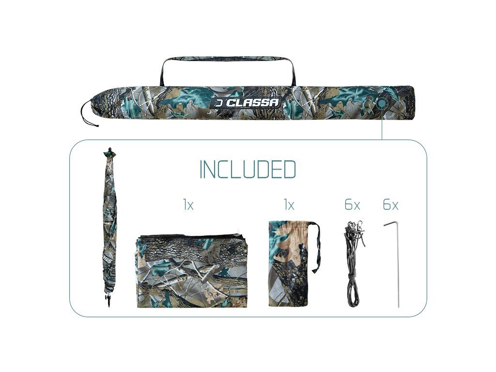 Deštník Delphin CLASSA CAMO je ideální volbou pro krátkodobé vycházky k vodě během deštivého, ale také slunečného počasí. Díky kopuli o rozměru 250 cm a 3 bočnicí poskytuje vynikající ochranu před srážkami či ostrým sluncem. Jeho design v camo provedení dokonale splyne s okolní přírodou. Švy deštníku jsou za horka kompletně podlepeny voděodolnou páskou pro zajištění 100% nepromokavosti i při větším dešti. Pro lepší stabilitu ve větru je deštník CLASSA CAMO vybaven čtyřmi ukotvovacími lany. K dispozici je boční prodloužená stěna, která se upevňuje pomocí kvalitního zipu kolem kopule. Spodní část bočnice je osazena úchyty pro upevnění k zemi pomocí zajišťovacích kolíků (kolíky jsou součástí balení). Deštník disponuje kloubem pro nastavení sklonu kopule, díky čemuž se umíte přizpůsobit slunečním paprskům ale i větru. Výšku deštníku si přizpůsobíte podle potřeby, což zároveň usnadní jeho upevnění i v členitějším terénu. Delphin CLASSA je všestranným, praktickým deštníkem, který vám zpříjemní pobyt u vody za jakýchkoli okolností. Technické parametry: Max.výška deštníku (až po vrch kopule): 210cm Max.výška deštníku (s upevněnou boční stěnou): 200cm Průměr přes kopuli : 250cm Transportní rozměry: 140x10x13cm Váha: 3,1 kgDoplňkové parametry