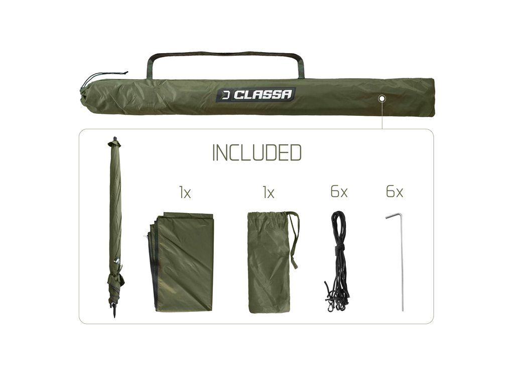 Deštník Delphin CLASSA je ideální volbou pro krátkodobé vycházky k vodě během deštivého, ale také slunečného počasí. Díky kopuli o rozměru 250 cm a 3 bočnicí poskytuje vynikající ochranu před srážkami či ostrým sluncem. Švy deštníku jsou za horka kompletně podlepeny voděodolnou páskou pro zajištění 100% nepromokavosti i při větším dešti. Pro lepší stabilitu ve větru je deštník CLASSA vybaven čtyřmi ukotvovacími lany. K dispozici je boční prodloužená stěna, která se upevňuje pomocí kvalitního zipu kolem kopule. Spodní část bočnice je osazena úchyty pro upevnění k zemi pomocí zajišťovacích kolíků (kolíky jsou součástí balení). Deštník disponuje kloubem pro nastavení sklonu kopule, díky čemuž se umíte přizpůsobit slunečním paprskům ale i větru. Výšku deštníku si přizpůsobíte podle potřeby, což zároveň usnadní jeho upevnění i v členitějším terénu. Delphin CLASSA je všestranným, praktickým deštníkem, který vám zpříjemní pobyt u vody za jakýchkoli okolností. Technické parametry: Max.výška deštníku (až po vrch kopule): 210cm Max.výška deštníku (s upevněnou boční stěnou): 200cm Průměr přes kopuli : 250cm Transportní rozměry: 140x10x13cm Váha: 3,1 kgDoplňkové parametry