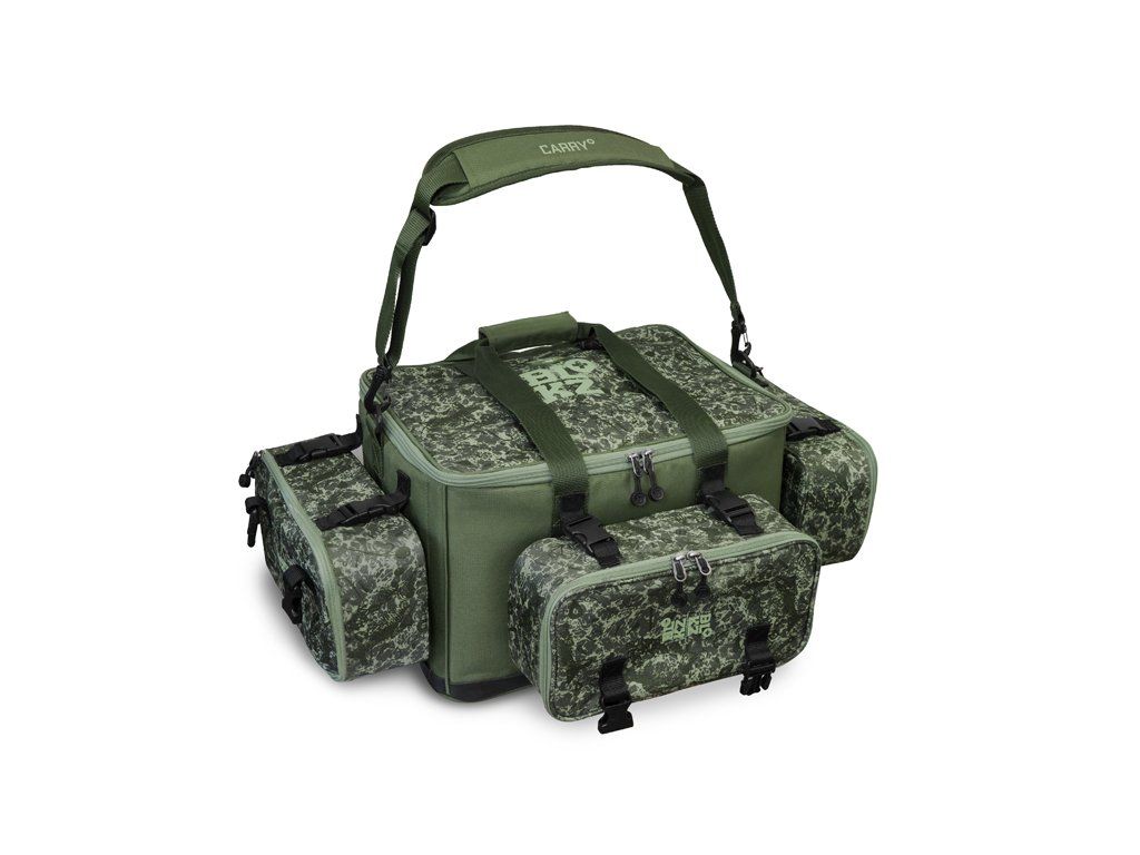 Delphin SPACE je označení pro exkluzivní sérii tašek z dílny značky Delphin. Vyznačuje se špičkovým zpracováním, kvalitními zipy, ale zejména výjimečným designem s použitím C2G kamufláže. Po uvedení jedinečného batohu BLOKZ na trh jsme si řekli, proč nepřinést něco podobného na způsob CarryAll tašky. Tašky, která vyniká svojí variabilitou a umožňuje přizpůsobit podle potřeby její objem od základních 30 až do úctyhodných 50 litrů. Velkou výhodou je, že samotné bloky kapes BLOKZ lze zaměňovat i s batohem BLOKZ, protože jsou totožné! To umožňuje narychlo změnit způsob transportu vaší výbavy, bez zdlouhavého přebalování z tašky do batohu či opačně. Tak jak napovídá název, taška se skládá z několika „bloků“, které dohromady tvoří jedinečný celek. V základu se CarryAll BLOKZ skládá z hlavní části – univerzální tašky, na které jsou upnuty tři velké samostatné kapsy v jedinečném C2G designu. Každá z nich má objem 5 litrů. Samotná kapsa BLOKZ uvnitř disponuje nastavitelnou/odnímatelnou přihrádkou, díky které budete mít ve svých věcech větší přehled a pořádek. Všechny tyto kapsy jsou opatřeny klipy, díky čemuž drží spolu s taškou velmi kompaktně jako celek o objemu 45 litrů. Pro ty, kterým se obsah 45 litrů zdá málo je zde možnost samostatně dokoupitelných BLOKZ taštiček, které lze upnout na univerzální popruhy s klipy, nacházející se na vrchu tašky. Popruhy lze stejně dobře využít například k uchycení částí výbavy či oblečení. Takto lze získat opravdu luxusní prostor pro transport rybářských potřeb. Samotný vnitřek základní tašky o objemu 30l je navržen tak, aby do něj bylo možno s lehkostí vkládat další tašky série SPACE či AREA. Na vrchní straně se navíc nachází praktická síťová dvou-kapsa, která obsáhne další potřebné věci. Všechny stěny jsou důkladně polstrovány 6 mm silnou výstelkou, přispívající k ochraně výbavy uvnitř. Maximální komfort během transportu zajišťuje mimořádně měkké polstrování ramenního popruhu či praktická rukojeť umožňující přenos tašky v ruce. Technické parametry: Celkový rozměr ŠxVxH: 65x27x45 cm Rozměr hlavní tašky ŠxVxH: 40x30x27 cm Rozměr upnutých tašek ŠxVxH: 15x32x11 cm Vnitřní síťované kapsy (2x): 30x20 cm Stylová patentovaná kamufláž z dílny značky Delphin pod označením C2G má mnoho podob a úhlů pohledu. Přesně tak i její název, který můžeme volně přeložit jako Carpath 2. generace, což přímo odkazuje na jejího předchůdce, ale můžeme ho číst i jako Carpath to Green, tedy přechod myšlenky Carpathu do zelené barvy. Její jedinečnost a nezaměnitelnost spočívá v prvcích, ze kterých je vytvořena. Na první dojem jde o kamufláž tvořenou třemi různými odstíny zelené. Všechno se však změní při detailnějším pohledu, kdy si všimnete siluety kaprů, komponent kaprařské montáže a log značky Delphin spolu s označením C2G. Díky tomuto neopakovatelnému provedení se vaše rybářská výbava okamžitě stane jedinečnou a maximálně originální.Doplňkové parametry