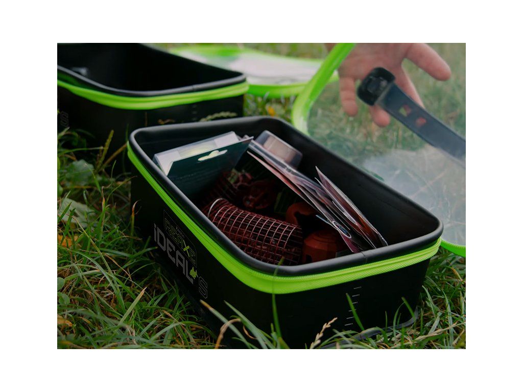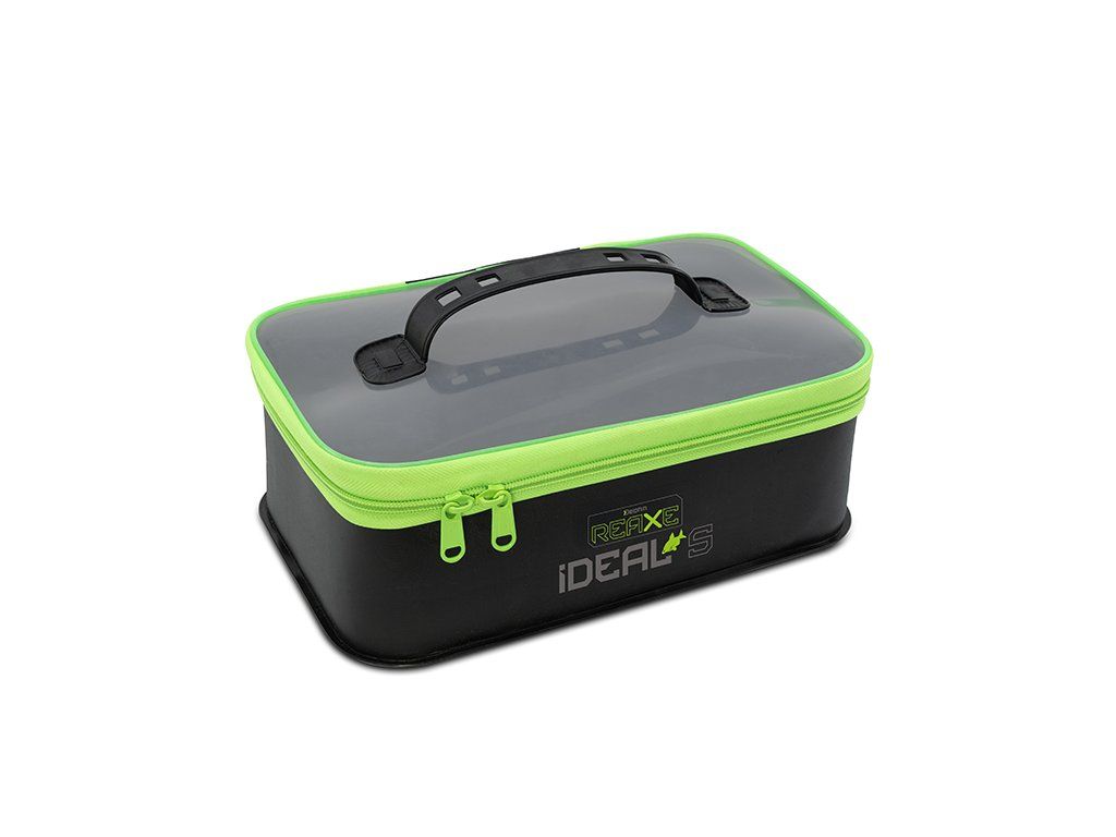 Delphin REAXE IDEAL S je praktická taška z EVA materiálu, která svým univerzálním použitím usnadní pobyt u vody každému rybáři. Skvěle poslouží k uschování návnad a nástrah, ale stejně dobře poslouží i jako odkládací prostor pro různé feederové vybavení, což z ní činí IDEALní volbu pro všechny příznivce feederu. Taška je vyrobena z pevného a odolného EVA materiálu, který je voděvzdorný, snadno omyvatelný a neabsorbuje pachy. V případě, že se vám něco uvnitř rozlije, tekutinu bezpečně zachytí spodní část tašky. Série produktů REAXE se vyznačuje elegantní kombinací černé barvy se zelenými prvky, přičemž ani model IDEAL S není výjimkou. Tašku lze pomocí výrazných zelených zipů zcela uzavřít po celém obvodu. Víko je vyrobeno z průhledného materiálu, díky kterému máte dokonalý přehled o tom, co se nachází uvnitř a na jeho vrchní straně se nachází praktický úchop sloužící pro transport a jednoduchou manipulaci. Technické parametry: Rozměr: 25x15x8cm Objem: 3LDoplňkové parametry