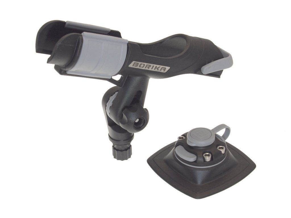 Univerzální držák prutu v setu rychloupínacím držákem Fasten FMP224*. Lze jej tak umístit prakticky do jakékoli části člunu. Prut do něj snadno zasunete a zajistíte otočnou pojistkou. Lze jej umístit jak navijákem dolů, tak i nahoru, což je výhodné zejména u multiplikátorů. Zadní opěrka pak umožňuje ještě větší fixaci prutu. Držák můžete namontovat do jakékoli polohy kolem vlastní osy (v horizontálním směru) a kdykoli tuto polohu změnit. Díky kloubu je držák natáčecí také ve vertikálním směru. Držák prutu je vyroben z pevného kvalitního plastu. Na spodku má upevňovací bod, který zasunete a pojistkou zajistíte do rychloupínacího držáku Fasten FMP224*.* FMP224 je univerzální rychloupínací držák s nalepovací základnou 110x110 mm, díky jehož velmi jednoduše a spolehlivě fungujícímu zámku můžete připevnit jakékoli příslušenství k lodím, jako je sonda sonaru, držák prutů, deska pro obrazovku sonaru, držáky na tablety, telefony, foťáky či Go pro kamery, vazáky kotvy, upevňovací háčky, vesla, hrazdy a další. Všechny tyto Fasten příslušenství mají na koncích speciálně tvarovaný upevňovací bod, který snadno zapadne do rychloupínacího držáku. Pak už stačí jen zasunout pojistku a příslušenství je pevně spojeno s držákem. Základnu lze pomocí speciálního lepidla na PVC nalepit na balóny člunu. Lze ji přilepit i na sedačku, zrcadlo lodi nebo na podlahu, jen je vždy nutné zvolit lepidlo s ohledem na daný povrch.
