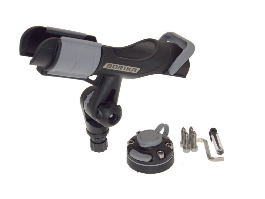 Univerzální držák prutu v setu rychloupínacím držákem Fasten FMB*. Lze jej tak umístit prakticky do jakékoli části člunu. Prut do něj snadno zasunete a zajistíte otočnou pojistkou. Lze jej umístit jak navijákem dolů, tak i nahoru, což je výhodné zejména u multiplikátorů. Zadní opěrka pak umožňuje ještě větší fixaci prutu. Držák můžete namontovat do jakékoli polohy kolem vlastní osy (v horizontálním směru) a kdykoli tuto polohu změnit. Díky kloubu je držák natáčecí také ve vertikálním směru. Držák prutu je vyroben z pevného kvalitního plastu. Na spodku má upevňovací bod, který zasunete a pojistkou zajistíte do rychloupínacího držáku Fasten FMB*.*FMB je univerzální rychloupínací držák se základnou (podložkou), díky jehož velmi jednoduše a spolehlivě fungujícímu zámku můžete připevnit jakékoli příslušenství k lodím, jako je sonda sonaru, držák prutů, deska pro obrazovku sonaru, držáky na tablety, telefony, foťáky či Go pro kamery, vazáky kotvy, upevňovací háčky, vesla, hrazdy a další. Všechny tyto Fasten příslušenství mají na koncích speciálně tvarovaný upevňovací bod, který snadno zapadne do rychloupínacího držáku. Pak už stačí jen zasunout pojistku a příslušenství je pevně spojeno s držákem. Držák je dodáván se čtyřmi vruty, čtyřmi šrouby a utahovacím imbusem. S pomocí vrutů nejprve přišroubujete základnu například do zadního zrcadla lodi, nebo jiné pevné desky. Vrchní část držáku poté snadno připevníte k základně pomocí šroubů.