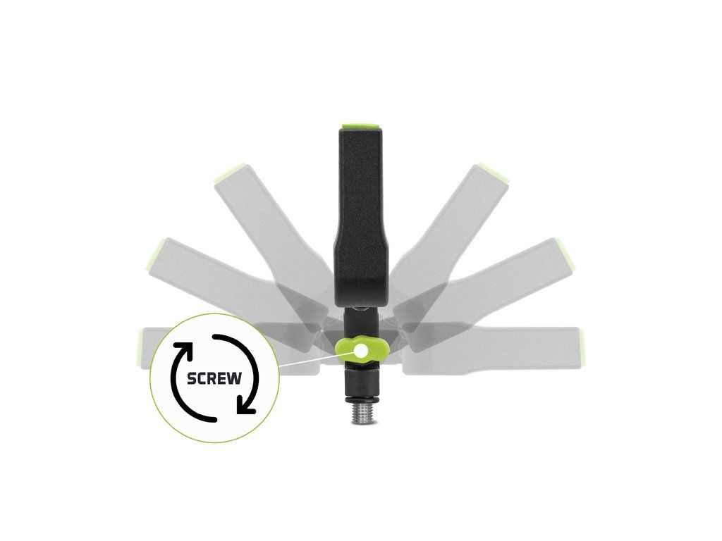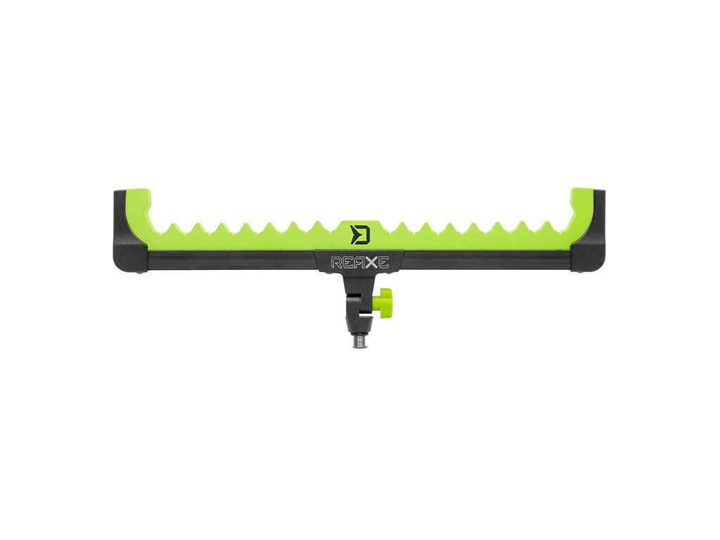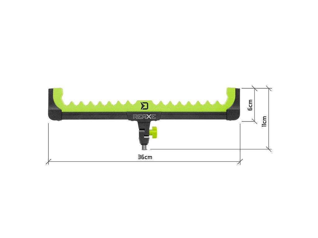 Praktický a variabilní přední feederový držák na pruty, nabízející skvělý poměr kvality a ceny. Je vyhotoven z EVA pěny vsazené v lehkém hliníkovém rámu, která obsahuje 16 speciálně tvarovaných výřezů pro prut s vlascem a tudíž nabízí možnost měnit jeho polohu pro zvýšení nebo snížení napětí na špičce. Držák je zároveň dostatečně dlouhý, což umožňuje použití dvou prutů najednou. Ve spodní části je na rám připevněn plastový kloub s otočným regulátorem, poskytující možnost polohování držáku v různých úhlech dle vašich potřeb a dle podmínek u vody. EvaFRONT disponuje také univerzálním závitem kompatibilním s většinou vidliček, feederových držáků a ramen. Barevně je držák laděn do černo-zelena a tím skvěle zapadne mezi ostatní produkty z řady REAXE. Technické parametry: Délka: 36cmDoplňkové parametry