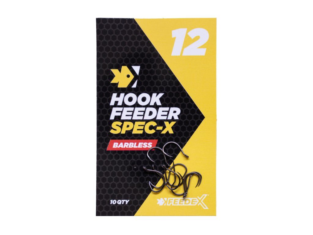 Spec-X jsou speciální feeder háčky s extra širokým ramínkem, který je mimořádně ostrý a zároveň velmi odolný. I proto jej používají mnozí závodníci a odborníci v této disciplíně. Lze jej použít k nastražení různých nástrah, jako je feeder boilie, pop-up, wafters, menších pelet, partiklu a podobně. Použijte bezuzlové vázání a vlasový přívěs zakončený smyčkou, nekonečnou zarážkou, bayonetem nebo zapichovákem. Lze jej použít i bez vlasového přívěsu pro nastražení měkčích nástrah přímo na háček.