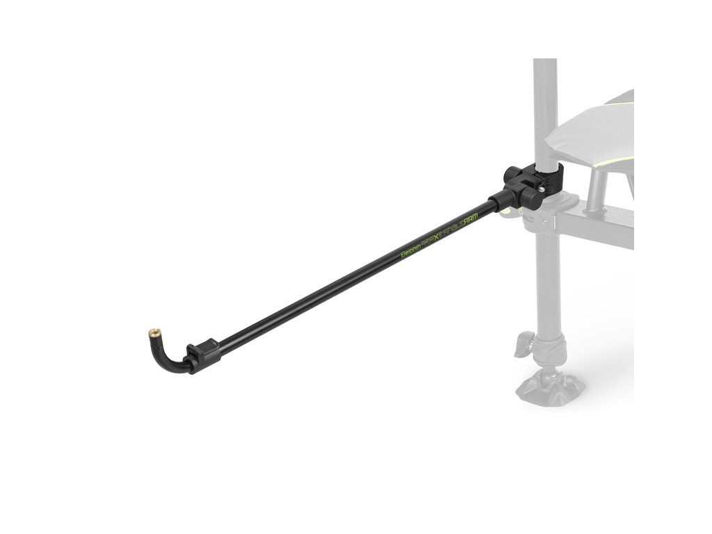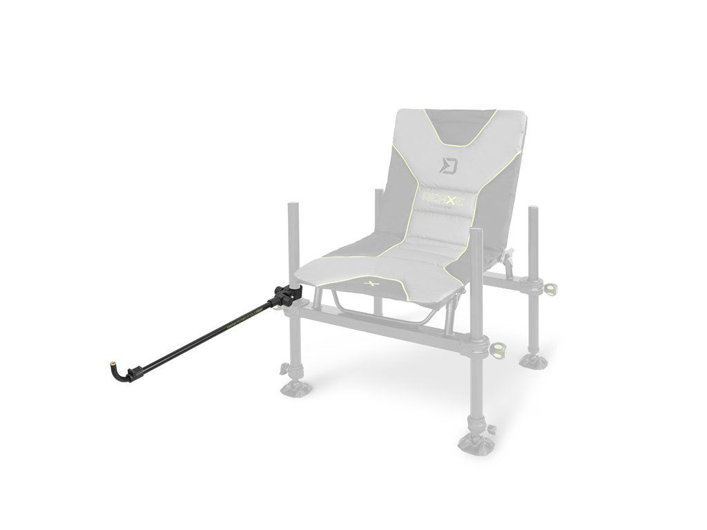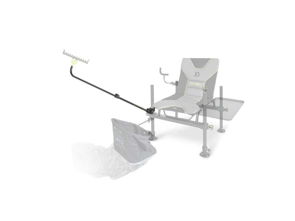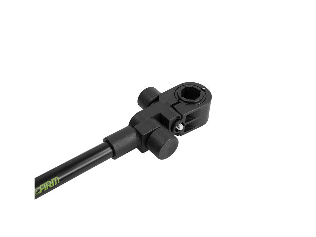 AngleARM je dlouhé feederové rameno, sloužící pro uložení prutů během lovu. Disponuje univerzálním závitem kompatibilním s většinou standardně vyráběných držáků prutů. Úchyt ramene poskytuje díky plastovým redukcím variabilní průměr 25, 30 nebo 36 mm, takže ideálně sedne na většinu křesel dostupných na trhu. Kloubový mechanismus s otočným regulátorem umožňuje nastavení ramene v různých polohách podle toho, zda chcete lovit se špičkou při hladině nebo co nejvýše nad vodou. Rameno je navíc také výsuvné, fixovatelné plastovým zavíracím klipem a lze jej použít s různými délkami prutů. Použitý mechanismus výrazně zvyšuje celkovou variabilitu produktu a tím pádem je rameno použitelné v rozličných podmínkách a situacích, které vás u vody mohou potkat. AngleARM je designově navrženo v černé barvě s šedou a výraznou zelenou grafikou, podobně jako ostatní produkty z řady REAXE. Technické parametry: Celková délka: 70-130cm Průměr: 16mm Průměr úchytu: 25,30,36mmDoplňkové parametry