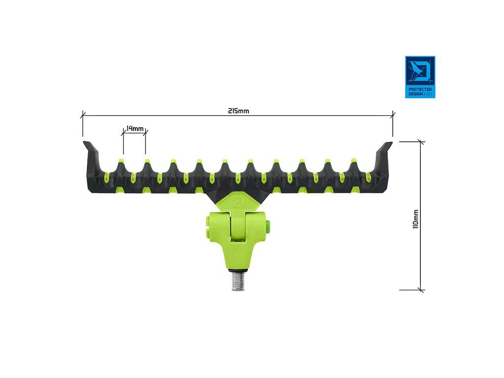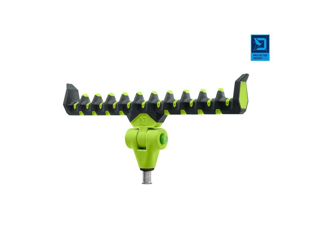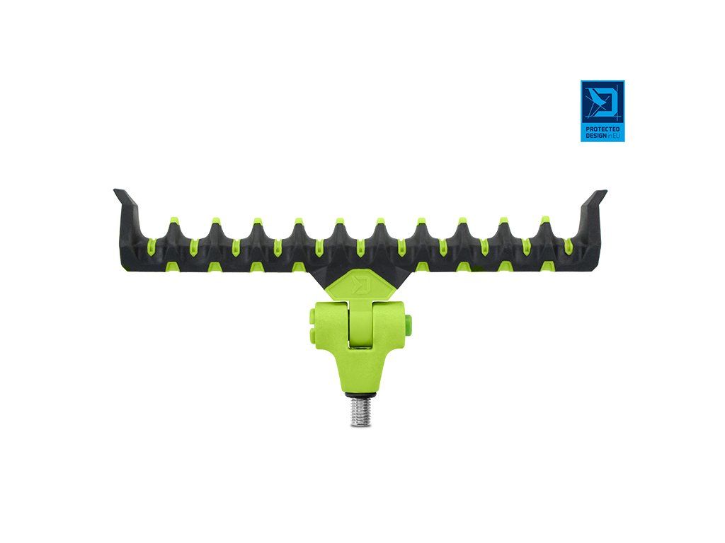 Prémiový feederový držák vysoké kvality v barvách inovativní feederové série Delphin Reaxe. Jak už název napovídá, model Flexi je plně naklápětelný pomocí jednoduchého mačkacího mechanismu, kterým umožňuje přizpůsobit se různému sklonu prutu, například během lovu na řece, ve větru nebo z nerovného terénu. Díky dostatečné šířce umožňuje upravit polohu prutu po nahození a tak docílit optimálního ohybu špičky bez potřeby nadměrného navíjení vlasce zpět na cívku navijáku. Držák je vyroben z odolných materiálů, takže se snadno nepoškodí a nepoškrábe. Jeho speciálně navržený tvar poskytuje dokonalou podporu prutu a zabrání jeho vysmeknutí i při razantních záběrech. Povrch držáku je potažen pogumovaným materiálem, který je extra šetrný k povrchu prutu a chrání jej před poškozením. Univerzální závit umožňuje uchycení na všechna standardní ramena, stojany a vidličky. Na závitové části se nachází gumová podložka, která zamezuje otáčení držáku. Držák Flexi lze použít i pro lov se dvěma pruty. Technické parametry: Celková délka: 215mmDoplňkové parametry
