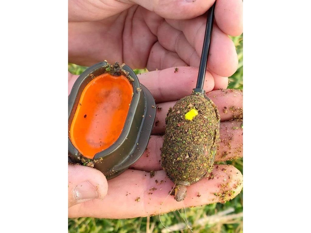Formička vhodná na krmítka firmy Feederbait. Použití je snadné. Stačí po okraj naplnit krmením, přiložit krmítko, stlačit a zmačknout tlačítko umístěné po celé spodní straně formičky. Z formičky Vám vypadne úhledná „bábovička“ a vy můžete nahazovat.