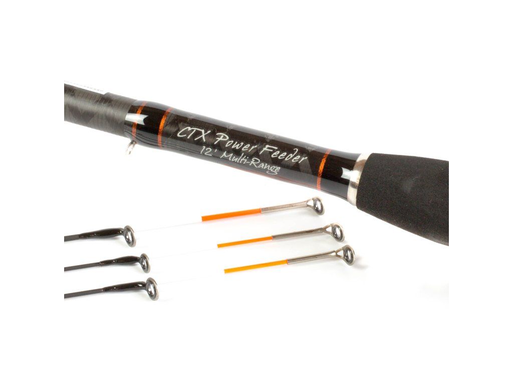 CTX Power feedery jsou stavěné především na větší jezera a řeky, nebo na daleké nahazování s velkými zátěžemi. Zachovávají si přitom skvělé vlastnosti jemnějších feederů, zdolávání si tak krásně užijete. Jsou postavené na blankách CTX s většími očky (včetně těch na chvějivé špičce), díky čemuž můžete použít i šokáč, či šňůru. Mají navíc i prodlouženou rukojeť pro extra dlouhé hody. V nabídce naleznete 2- a 3-dílné modely, přičemž dvoudílné se dělají v délkách 11‘, 12’ a 13’, trojdílné pak v délkách 12‘, 13’ a 14’. Pruty s označením Special jsou více univerzální a poradí si velmi dobře s různými podmínkami lovu. Lehce silnější modely Distance jsou pak ty pravé speciály pro potřeby dalekých hodů. Třídílný CTX Multi Power feeder je univerzální třídílný feeder se zátěží 30 až 60g.Samozřejmostí je bezlaková úprava prutů, 3 různé chvějivé špičky a nejkvalitnější komponenty. Rukojeť je korková, očka KIgan Anti-frap, sedlo Fuji VSS. Pruty jsou v kvalitních obalech, nahoře i dole uložené do neoprénových chrániček. Chvějivé špičky jsou značeny v oz (unce) a jsou z carbonu.
