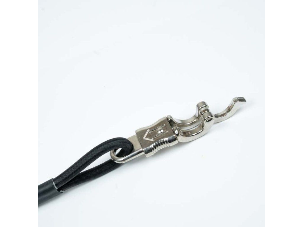Kvalitně zpracovaný, vysoce pevný 150 cm dlouhý elastický fendr s dobře viditelným oranžovým plovákem a pružinovou uzamykací sponou pro bezpečné uvázání člunu za všech podmínek. Rychloupínací spona (karabina) umožňuje její uvolnění jednou rukou. Spodní prázdnou smyčku je potřeba upevnit k nějaké stabilní konstrukci, nebo na ní připevnit závaží. V tom případě doporučujeme minimálně 10 kg, v obtížných podmínkách i výrazně víc. Závisí přitom i na tvaru zátěže případně její schopnosti držet na dně.