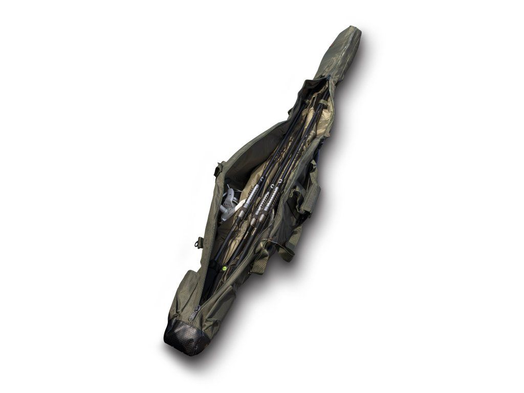 Pouzdro Master Combo pojme 2 až 3 kompletně sestavené pruty a k tomu i další příslušenství, jako je například podběrák, deštník, vidličky, carbonová tyč a další. Pouzdro je multifukční, detailně propracované, perfektně zpracované, silně polstrované, má silný kovový zip a komfortní nastavitelný popruh. Je dostatečně dlouhé a široké, aby snadno pojmulo dva nebo tři kompletně sestavené pruty s velkými navijáky. Vrchní materiál v decentní zelené barvě je vodoodpudivý. Vnitřek je z jemnější tkaniny, mezi tím je dostatečně silné polstrování. Všechny tři vnitřní komory jsou od sebe oddělené polstrovanou výplní, ta prostřední má navíc suché zipy na úplné uzavření. Suchý zip na uchycení prutu je i ve všech třech komorách. Úchopy pro ruční přenášení mají zesílenou výztuž, kterou lze spojit obě poutka k sobě, silně polstrovaný popruh umožňuje nastavit jej podle vaší výšky. Na spodku pouzdra je bytelné pogumování chránící proti vlhku a bahnu. Po obou vnějších stranách jsou kapsy a nad nimi ve dvou úrovních suché zipy, které umožňují uchycení dlouhých předmětů, jako je tyč k podběráku, vidličky, deštník atd. Decentní logo Garda ve vrchní části podtrhuje skvělý design produktu.Pouzdro na prut Master Combo 12ft – délka 200 cm, šířka nahoře 23 cm, šířka dole 35 cm