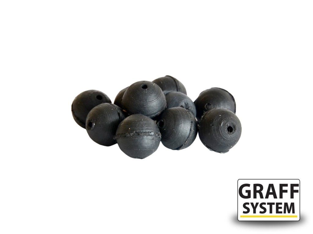 Gumová kulička slouží jako tlumič a ochrana uzlů mezi obratlík a olovo. Tyto kuličky se používají zejména jako tlumící zarážka pod zátěže ke krytí uzlů. Lze ji použít jako fixační segment při sestavě "helikoptéra" nad a pod závěsovým obratlíkem. Jsou vyrobeny z kvalitní pryže, nemění svůj tvar a nepraskají ani po delším používání.Doplňkové parametry