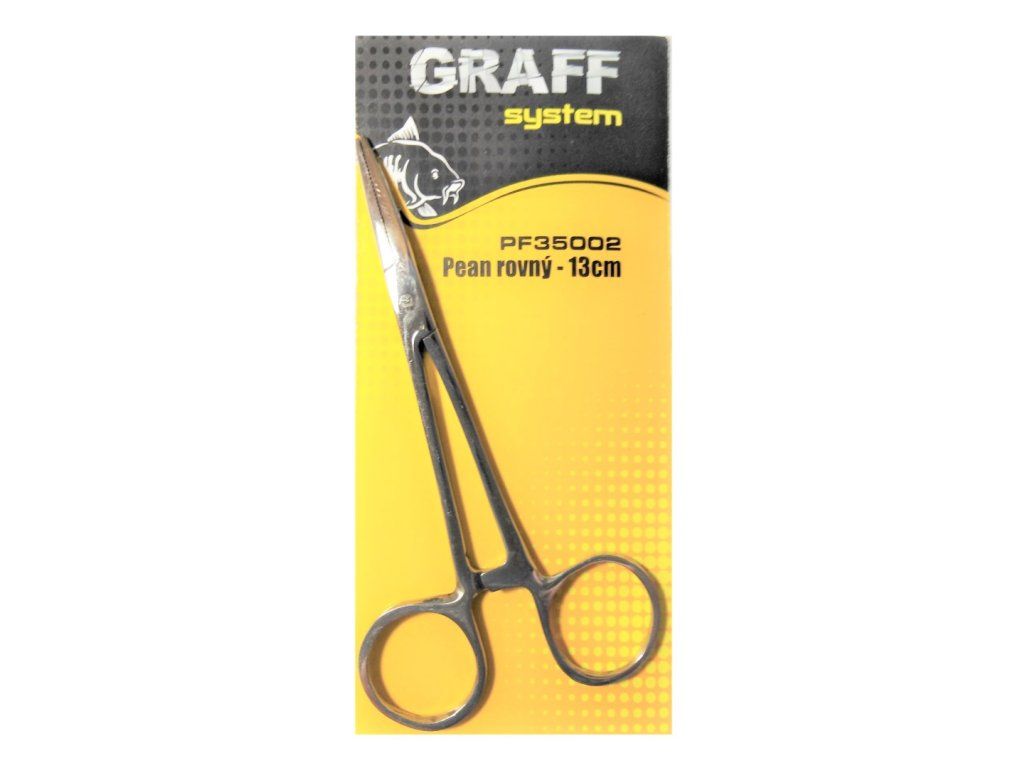 Rybářský pean rovný v různých délkách. Peany jsou určeny pro nesčetné množství úkonů jako odstranění háčků z ryb, cvaknutí olověných broků na vlasec, cvaknutí hrotu na háčku atd.Doplňkové parametry