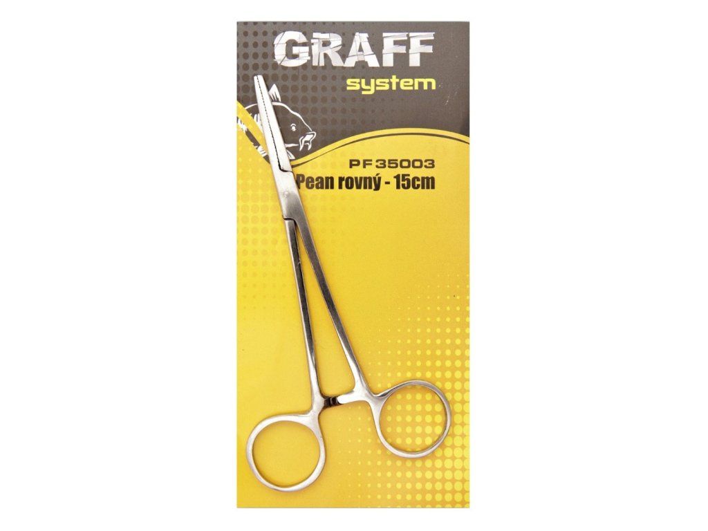 Rybářský pean rovný v různých délkách. Peany jsou určeny pro nesčetné množství úkonů jako odstranění háčků z ryb, cvaknutí olověných broků na vlasec, cvaknutí hrotu na háčku atd.Doplňkové parametry