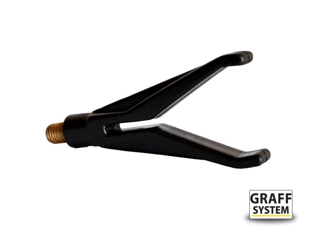 Kvalitní šroubovací rohatinka na vidličku, která pevně drží prut na svém místě.