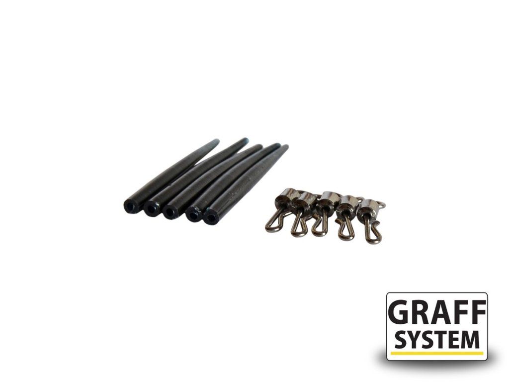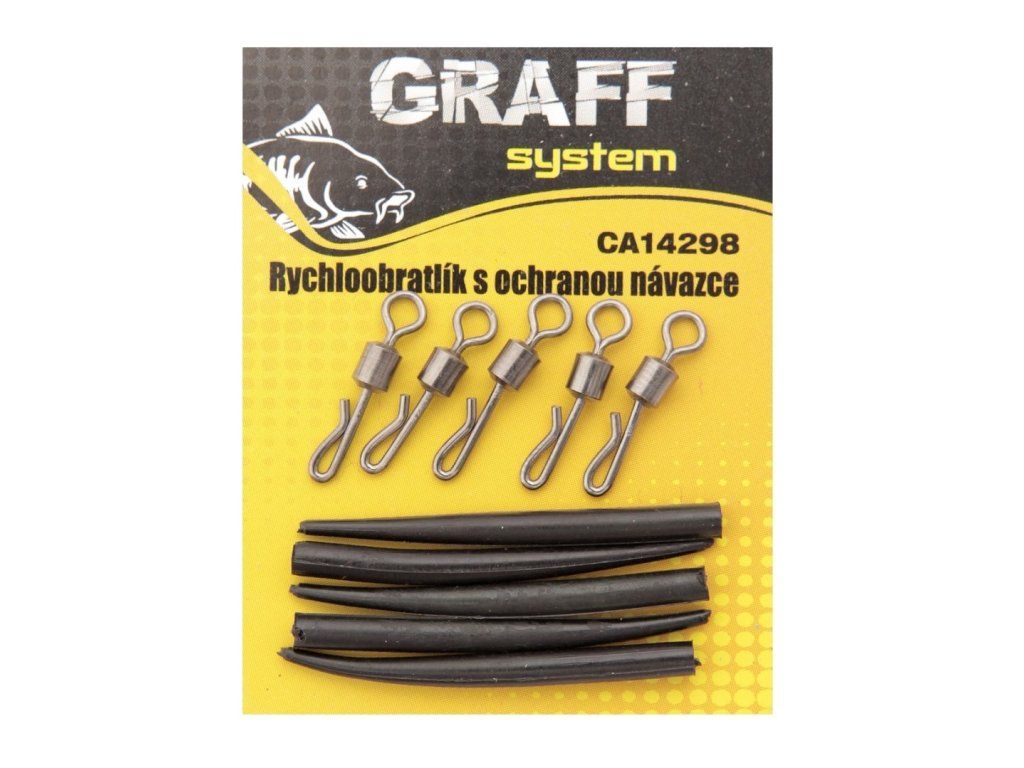 Rychlo-obratlík s ochranou návazce - černý. Balení obsahuje 5ks rychloobratlíků a 5ks ochrany proti zamotání.Doplňkové parametry