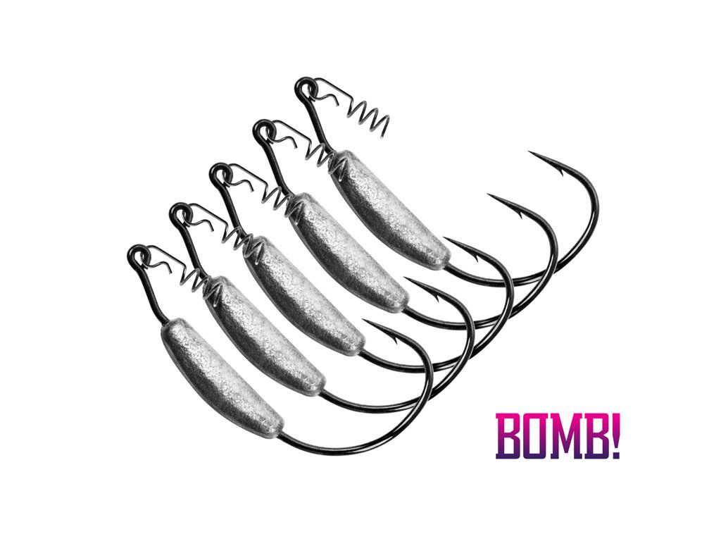 Háček BOMB! HeavyShank Vám umožní lov i na těch nejzarostlejších vodách s množstvím překážek. Unikátní systém nastražení nástrahy Vám usnadní šroub připevněný k očku háčku, do kterého jen jednoduše navrtáte umělou nástrahu kterou následně propíchnete háčkem. Speciální tvar háčku Vám umožní schovat hrot tak, abyste nezachytili žádnou překážku nebo nečistotu ve vodě, ale zároveň v kombinaci s měkkou nástrahou umožní zaseknout rybu bez jakýchkoli problémů. Umístění závaží na háčku je důkladně vyměřeno kvůli ideálnímu chodu vaší nástrahy. Pro zvolení ideální zbraně v naší nabídce naleznete paletu kombinací závaží a velikosti háčků.Doplňkové parametry
