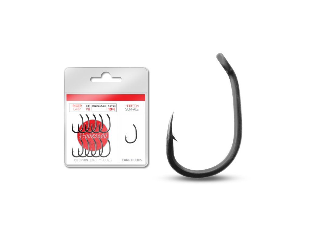 Háčky bílé série Delphin HOOKAIDO jsou nejvyšší řadou určenou výsostně na lov kaprů. Tyto háčky vynikají těmi nejlepšími vlastnostmi. Vyrobené jsou z nejkvalitnějších surovin a jejich povrch je potažen vrstvou TEFCON-u. Tento povrch zaručuje matný vzhled háčků bez odlesků. Stejně se podílí na lepších vlastnostech daných háčků. Bílá série HOOKAIDO si poradí i s těmi najbojovnejšími kapitálními kusy kaprů bez nežádoucího ohnutí háčku. Díky nejnovějším technologiím ostření je jejich hrot dokonale ostrý i po delším používání. Delphin HKD Riger je postaven jako vysoce pevný háček. Tvar očka dovnitř umožňuje skvělé využití s tvrdými fluorocarbonovými návazci. Technické parametry: - s očkem - s protihrotem - osově zakřivený - průřez: zploštělýDoplňkové parametry