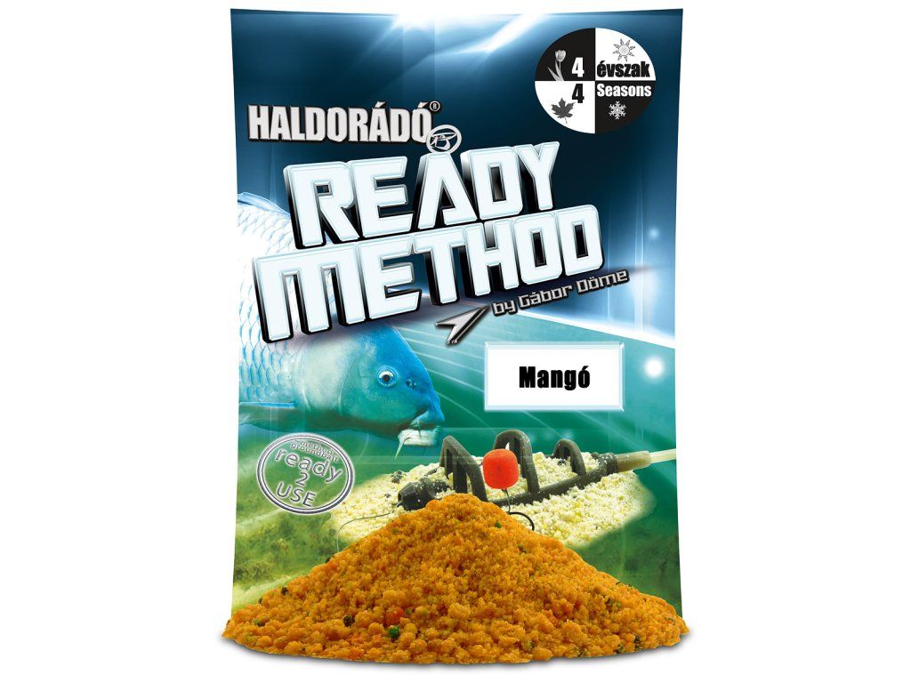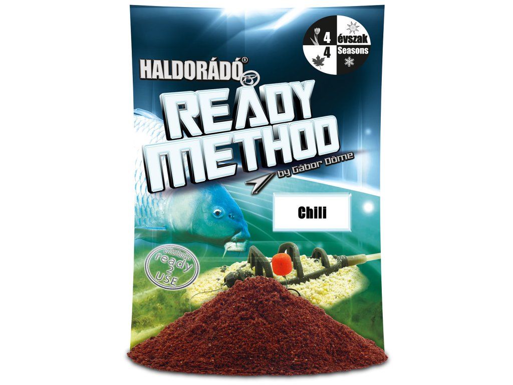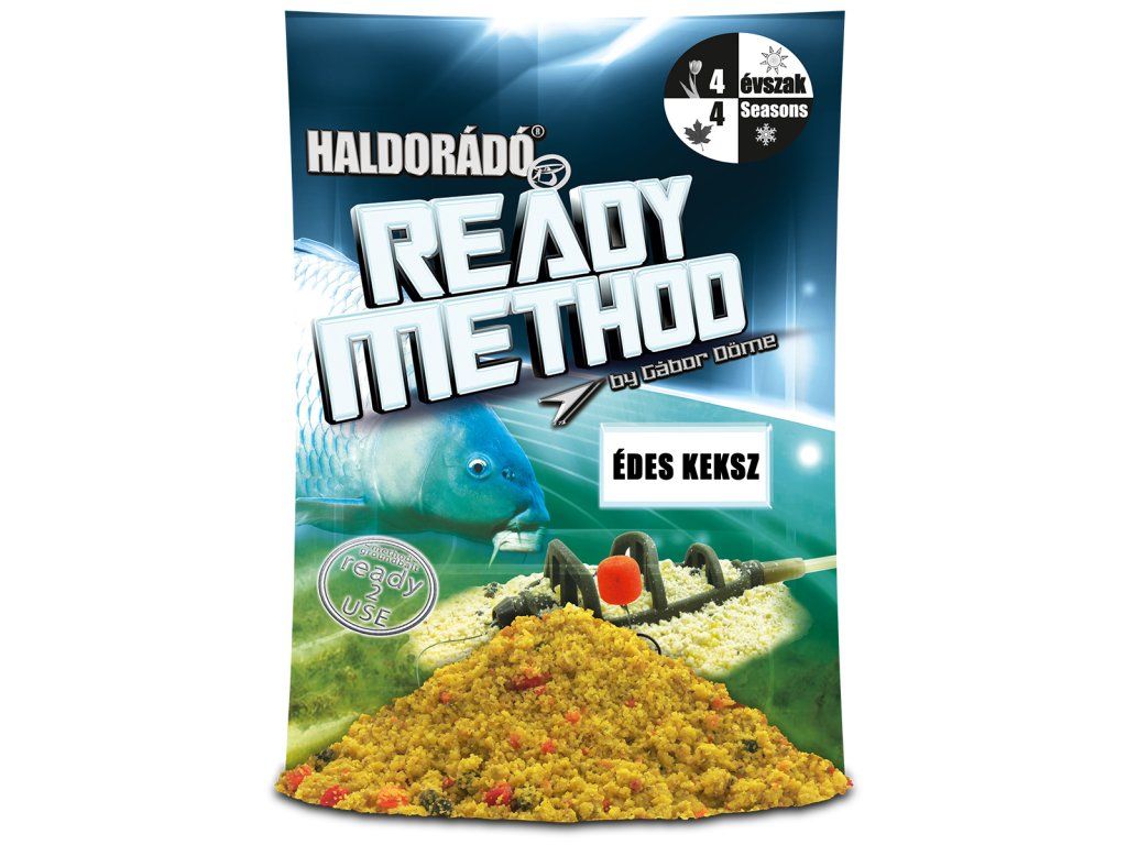 V roce 2018 uvedla značka Haldorádó na trh novou řadu krmiv s názvem Ready Method. Tato krmiva se od ostatních lišila tím, že už byla balena ve vlhčeném stavu a rybářům tak zbýval pouze jediný úkol - otevřít obal a používat. Vlastnosti: • Krmiva jsou vhodné k celoročnímu použití a je velmi efektivní pro lov na method feeder • Směs má střední zrnitost a je velmi účinnáDoplňkové parametry