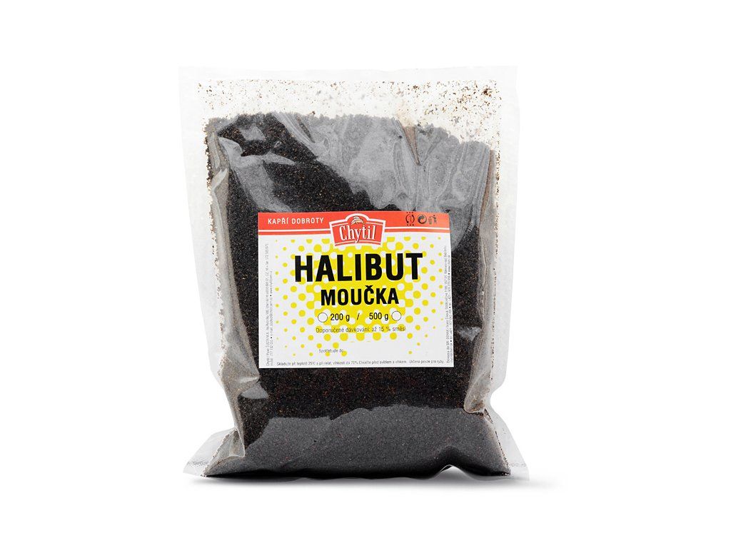 Pronikavě vonící tmavá moučka. Vyrábí se velmi jednoduše - drcením a pak jemným mletím halibut pelet ( nuget ). Má vysoký obsah olejů ( 30% ) a v této sezoně bude hitem č.1.